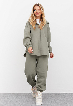 Детали: брюки прямого кроя из экозамши. Пояс на резинке. Карманы в боковом шве.