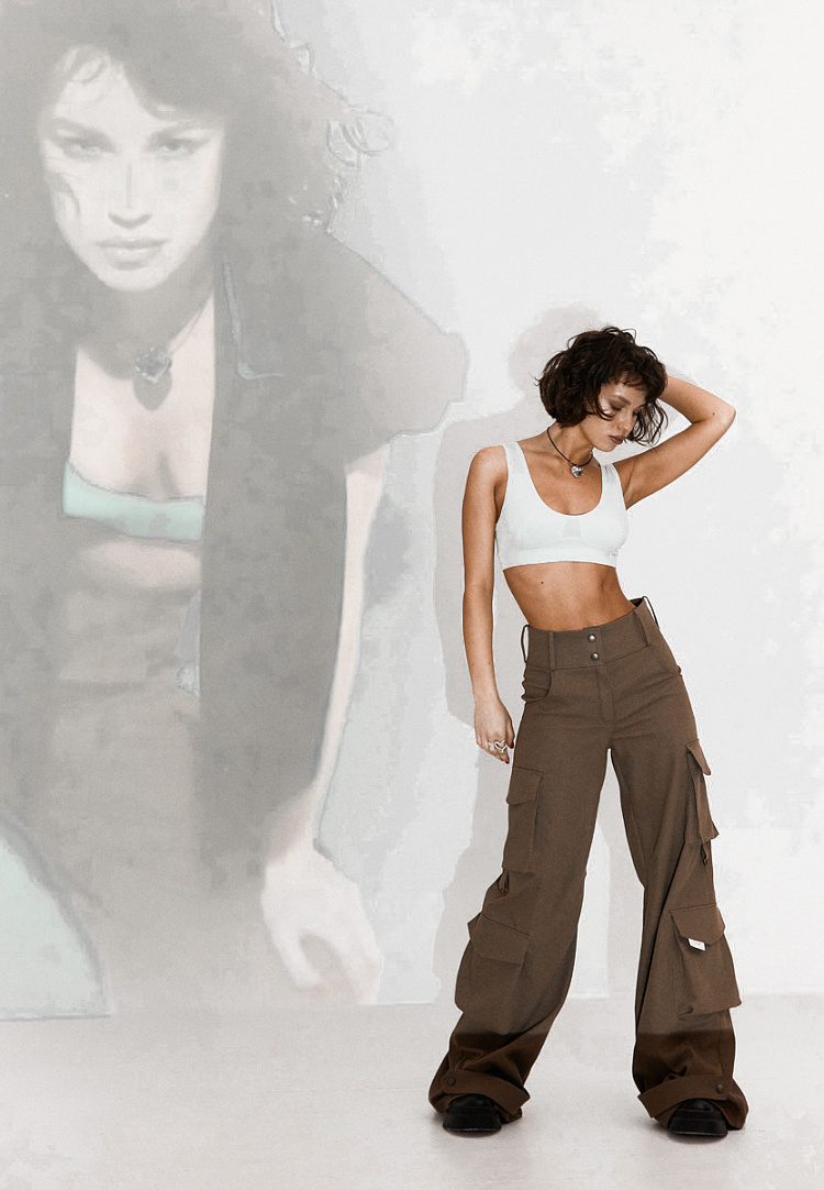 Те самые карго из джинсы, которые точно бы оценила Лара Крофт! Любимая классика: завышенная талия, подчеркивающая фигуру, объемные карманы и широкие штанины до самого пола.