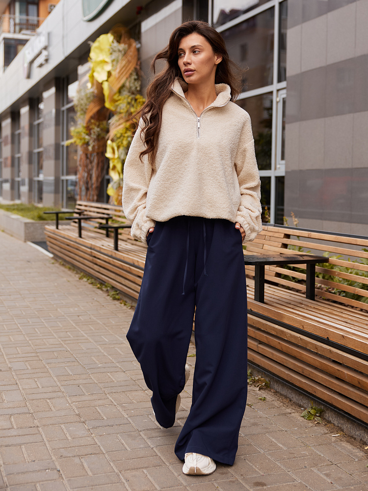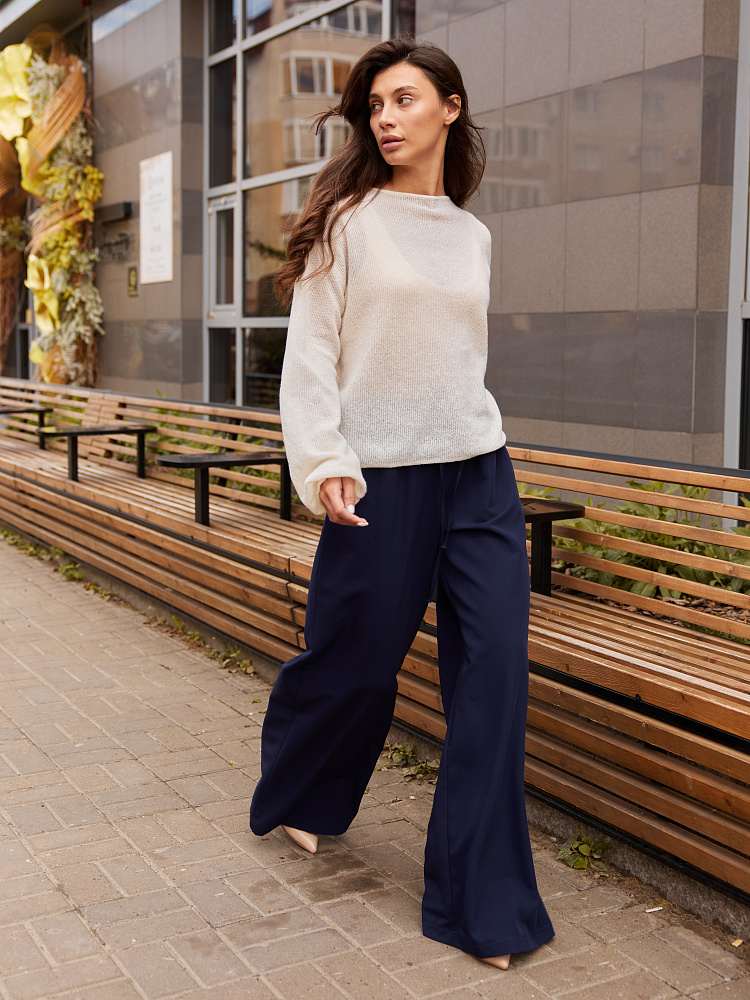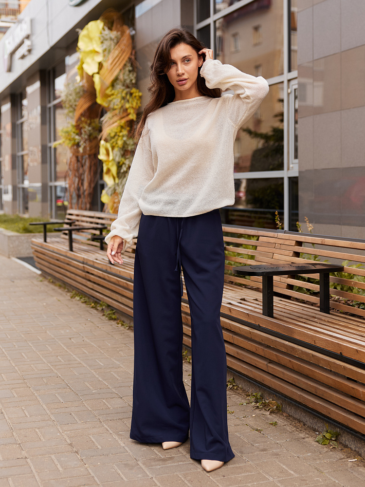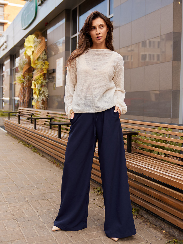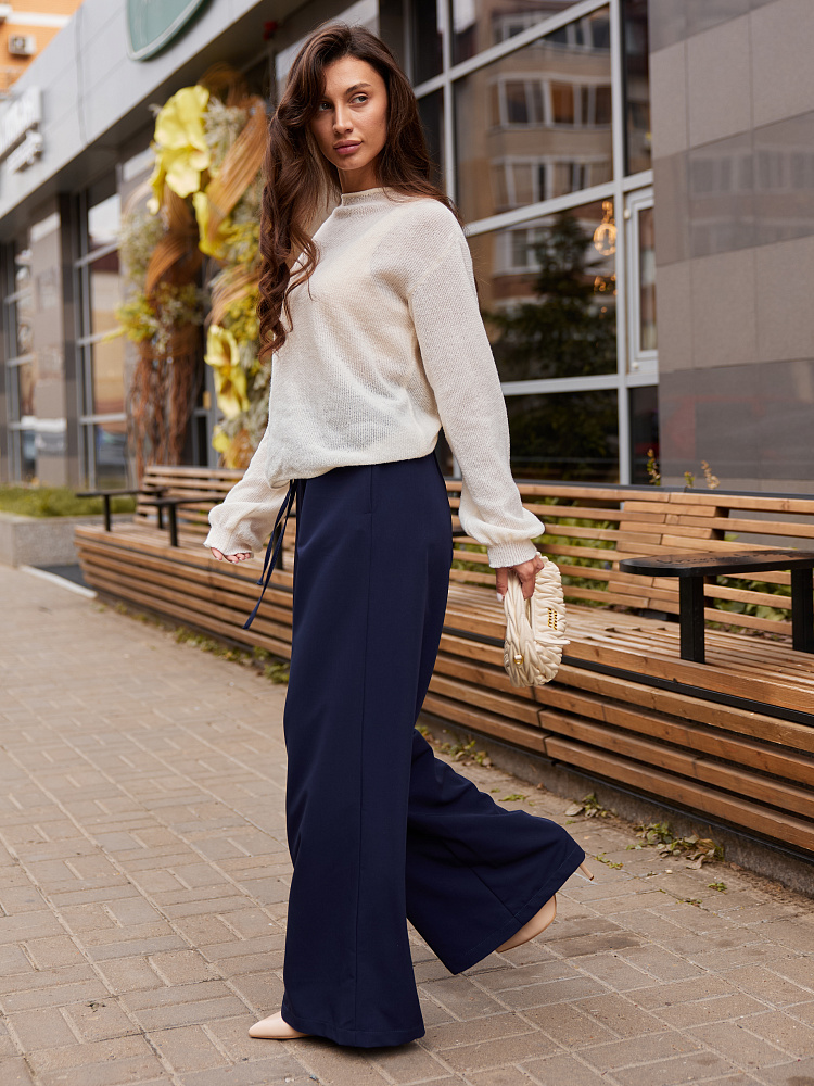 Брюки-палаццо обволакивают фигуру и нежно прикасаются к телу. Такие палаццо хорошо подойдут к длинной рубашке, пиджаку или наоборот кроп-топу.
