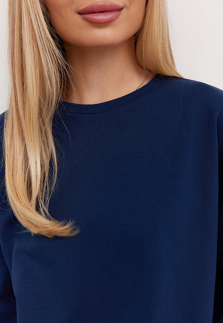 Детали: втачной удлиненный рукав. На горловине обтачка из основной ткани.