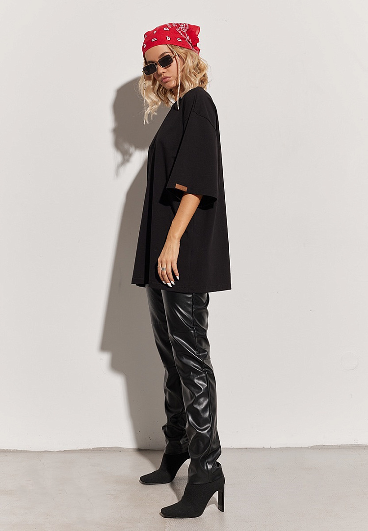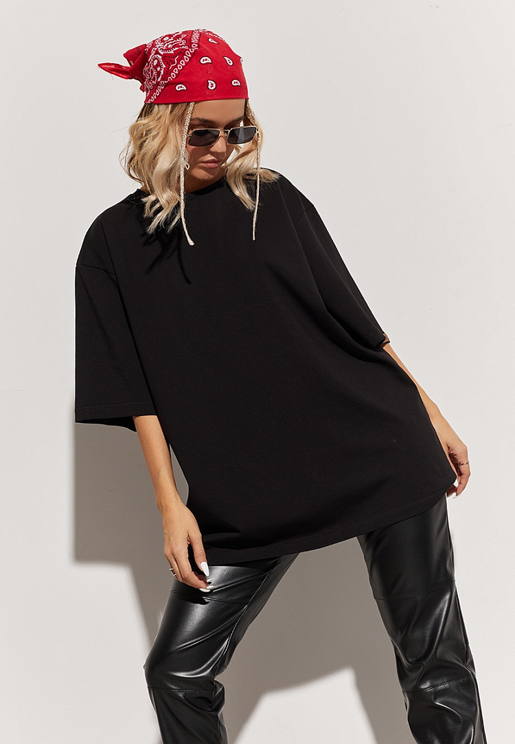 Удлиненная футболка оверсайз послужит базой для твоих образов. В ней ты будешь всегда чувствовать уверенность в себе, не отвлекаясь на мысли о внешнем виде.