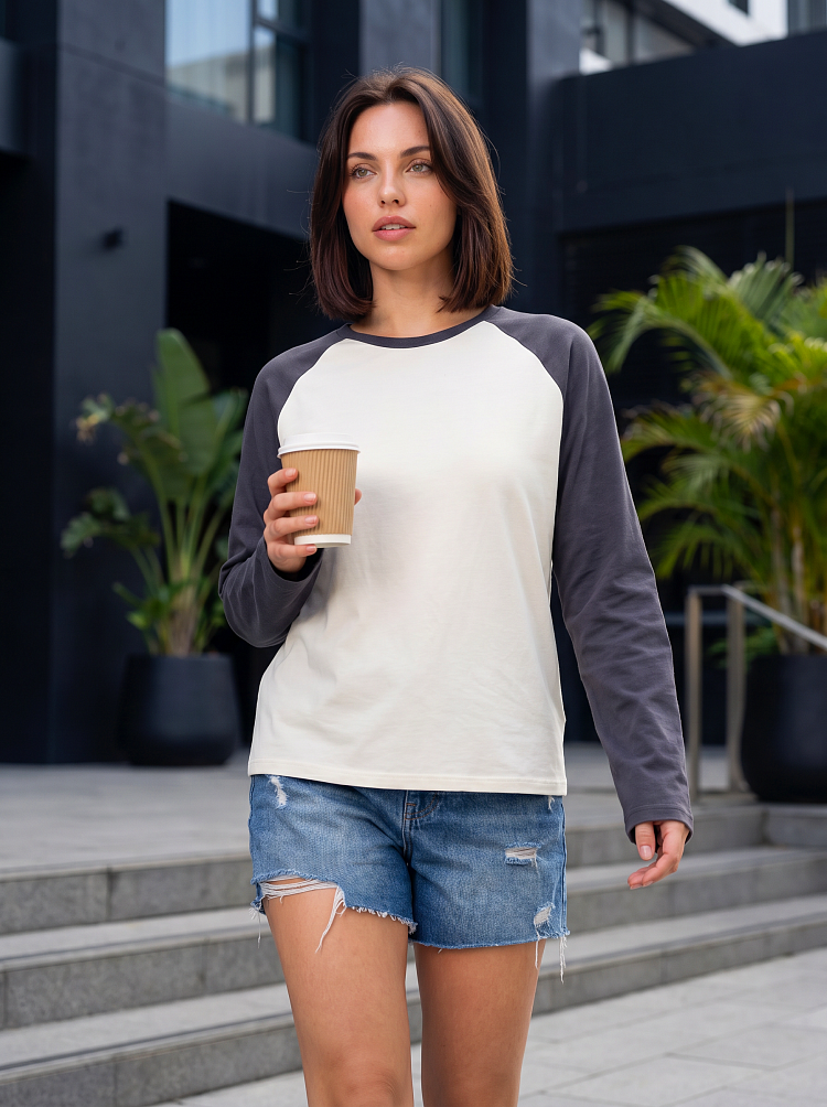 Лонгслив реглан в молочно-оливковом цвете — стильная базовая модель с мягким спортивным акцентом. Контрастные рукава оттенка оливы красиво освежают образ, а молочная основа делает изделие лёгким и универсальным для сочетаний. Свободный комфортный силуэт не сковывает движения, поэтому лонгслив подойдёт на каждый день: для прогулок, поездок, отдыха и casual-образов. Его можно носить самостоятельно или использовать как нижний слой под жилет, рубашку, куртку или кардиган. Преимущества: — актуальное сочетание молочного и оливкового цвета — удобный крой реглан — мягкий повседневный стиль — легко сочетается с джинсами и базовым гардеробом — подходит для дома, прогулок и повседневной носки
