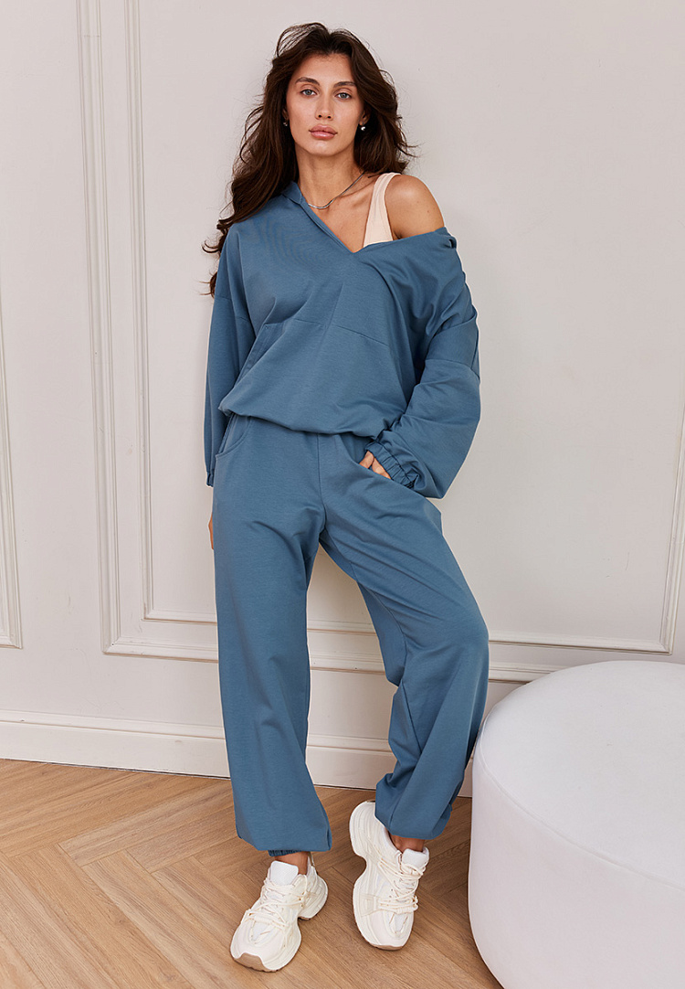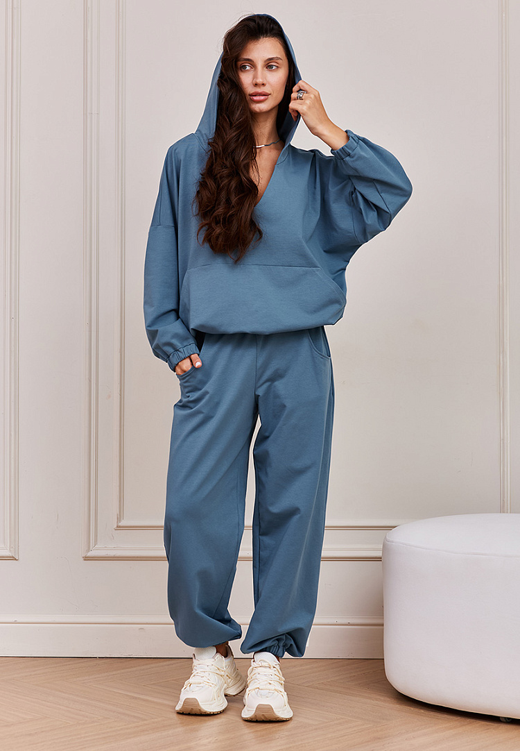 Спортивный костюм с брюками CITY STAR – это стильный и комфортный брючный костюм, который станет незаменимым элементом вашего гардероба. Этот демисезонный комплект, выполненный из плотного трикотажного материала, идеально подходит для прохладной погоды, обеспечивая комфорт и свободу движений. Базовый дизайн с V-образным вырезом горловины и несъемным капюшоном на толстовке, дополненный удобными джоггерами с высокой посадкой, создает универсальный образ, который подходит девушкам разного роста и комплекции. Набор станет практичным решением для беременных, обеспечивая максимальный комфорт в течение всего дня. Спортивный костюм CITY STAR – это идеальный выбор для активного отдыха, прогулок, занятий спортом или просто для создания расслабленного повседневного образа.