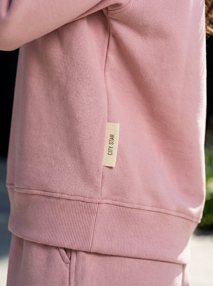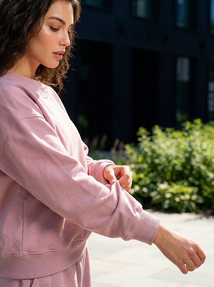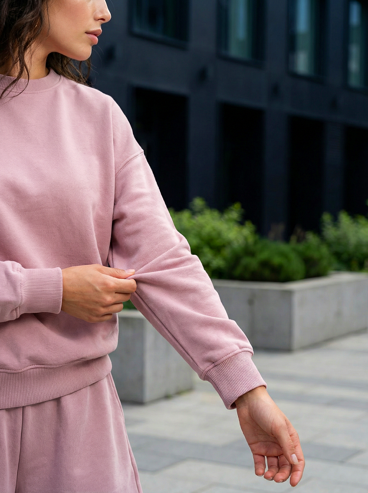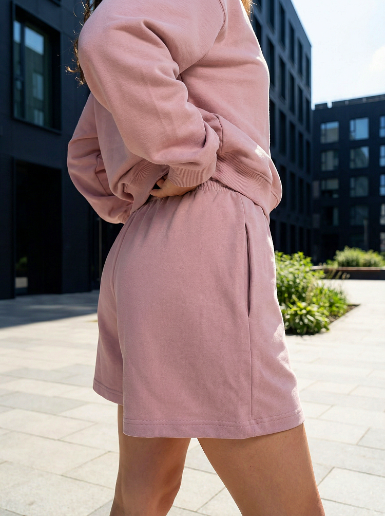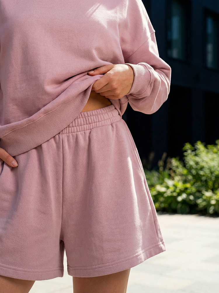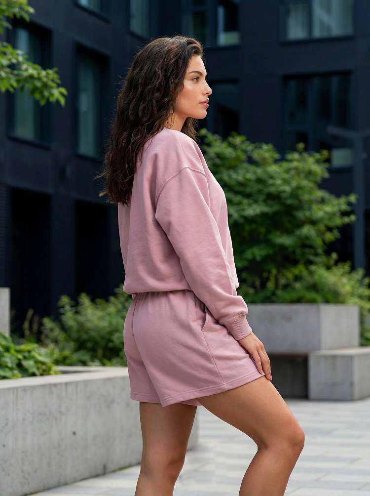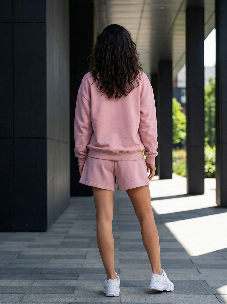 Легкий и стильный женский костюм в нежном пудровом оттенке — идеальный вариант для прогулок, отдыха и комфортных городских образов. Комплект состоит из свободного свитшота с длинным рукавом и удобных шорт на мягкой резинке. Расслабленный силуэт не сковывает движения и делает образ современным и аккуратным.