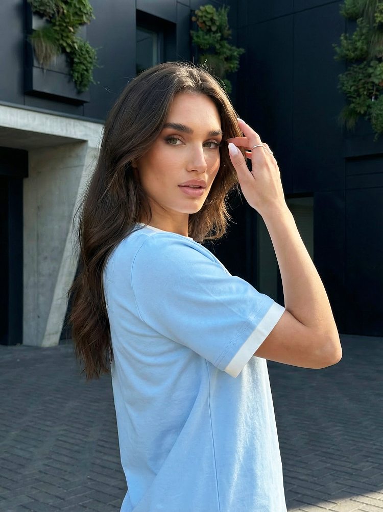 Декоративные вставки добавляют модели современный акцент и делают её более выразительной, сохраняя при этом лаконичный и универсальный стиль. Футболка легко сочетается с джинсами, брюками, шортами или юбками, позволяя создавать как расслабленные повседневные, так и более стильные городские образы.