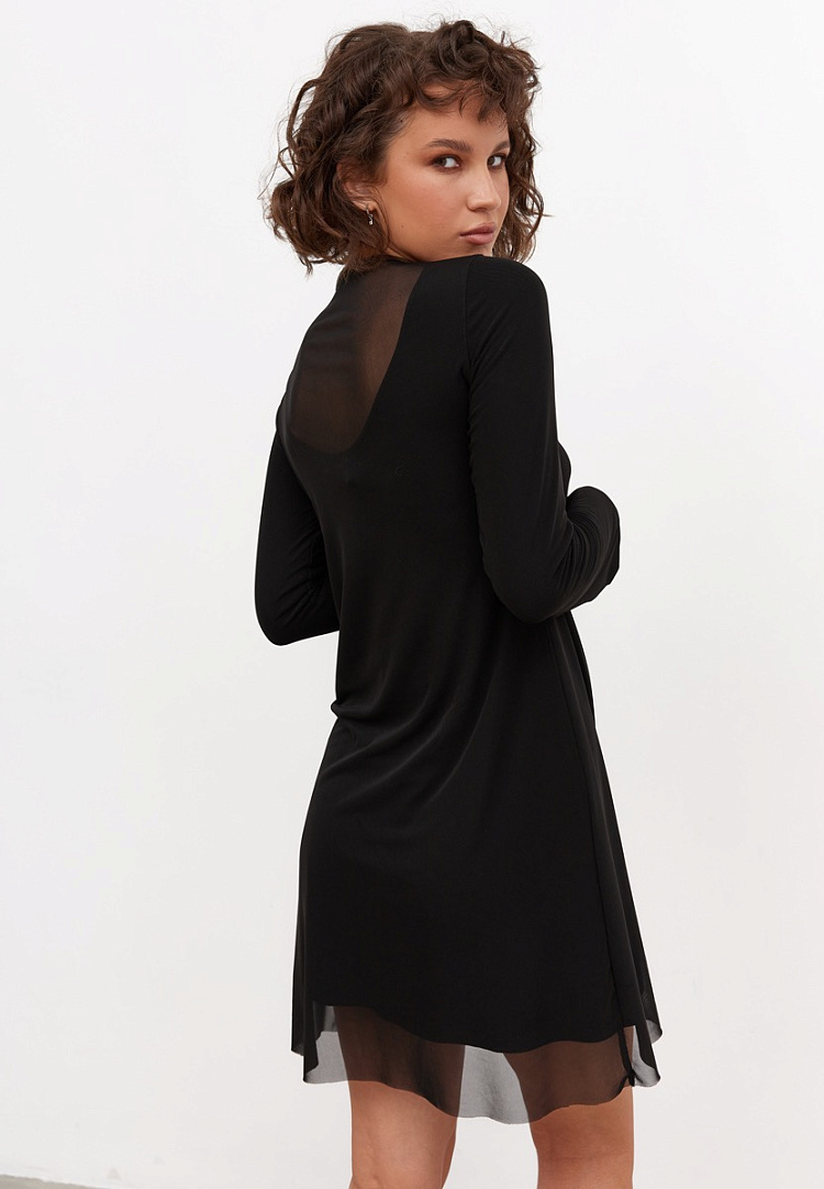 Дерзкое и скромное двойное платье с сеткой добавит загадочности в ваш образ. Сетка заходит за пределы рукавов, декольте и подола, покрывая полупрозрачной вуалью ваше тело.
