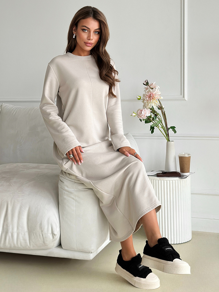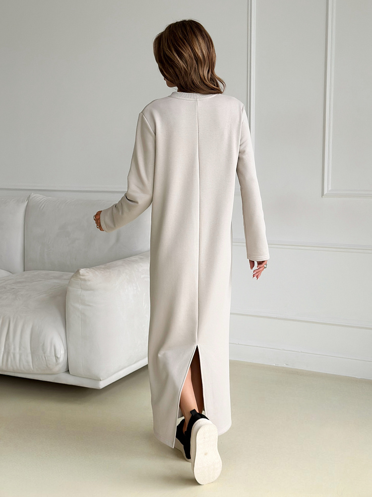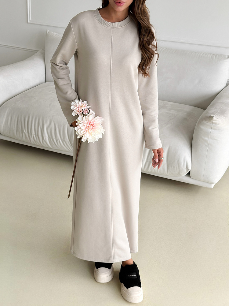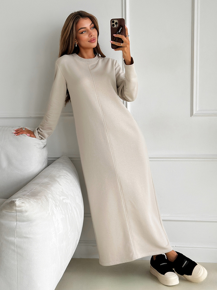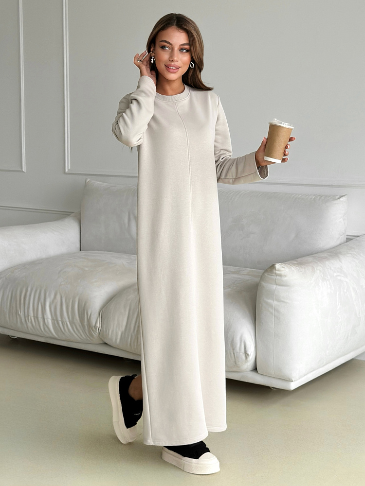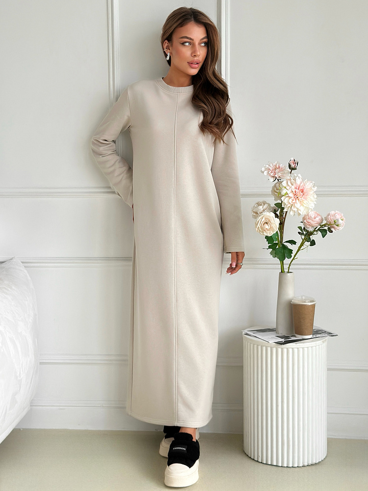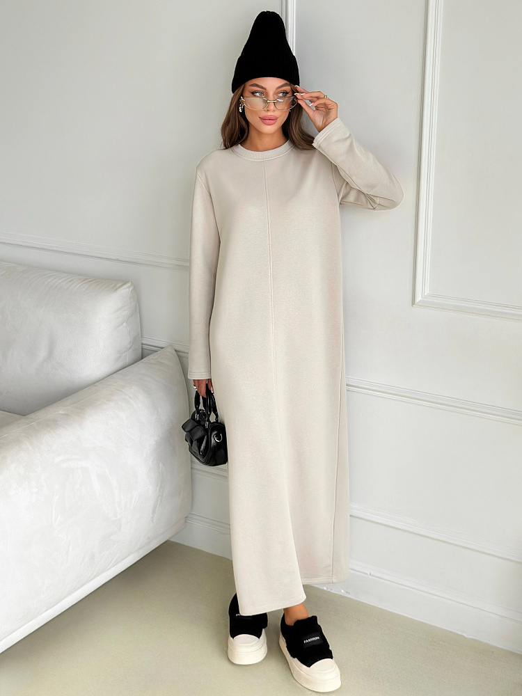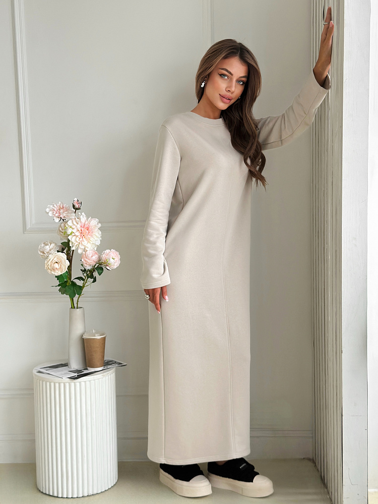 Представляем вам уютное и стильное платье, которое станет незаменимым спутником в прохладные осенние и зимние дни. Сшитое из мягкого и теплого футера 3 нитка петля, оно подарит вам комфорт и уют в любую погоду. Бежевый или молочный цвет добавит образу нежности и элегантности, а прямой покрой с разрезом подчеркнет вашу фигуру. Длинные рукава защитят от холода, а отсутствие карманов не будет вас отвлекать. Это платье станет идеальным выбором для офиса, прогулок, учебы и любых других повседневных мероприятий. Его универсальность и комфорт оценят все, кто ценит практичность и стиль.