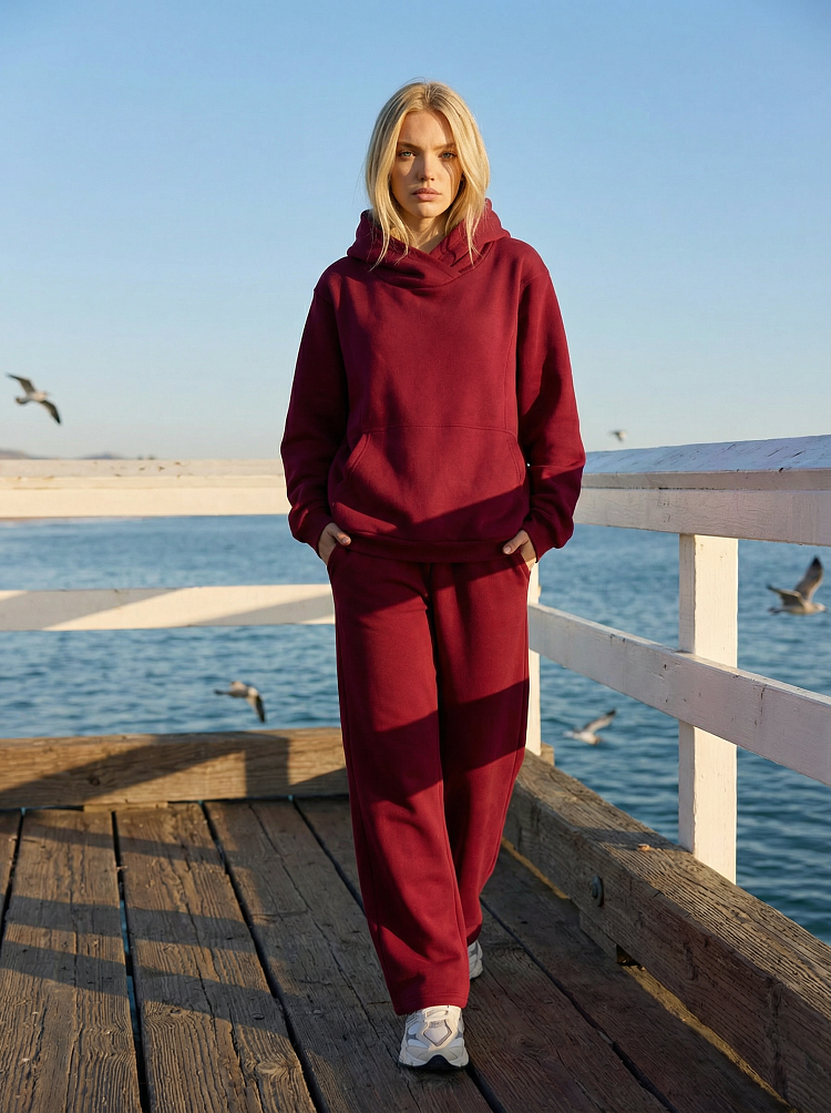 Костюм женский оверсайз без начеса двойка от бренда CITY STAR станет идеальным решением для любой девушки! Однотонный оверсайз костюм с худи и штанами отлично подходит как тренировочная одежда, и даже для повседневных выходов. Спортивный костюм бордовый женский без начеса имеет свободный крой и прекрасно сидит на всех типах фигур. Отсутствие начеса делает его приятным в тёплую погоду, а трикотажный материал обеспечивает воздухопроницаемость надежен в уходе не теряет форму. Подойдет как для прогулок по городу, так и для тренировок в зале, занятий фитнесом, спортом и бегом. Трикотажный костюм женский станет отличным выбором для и обеспечит комфорт для беременных женщин, благодаря удачному крою и свободному фасону, подойдет полным.