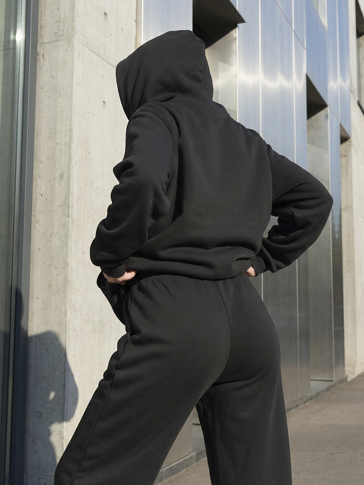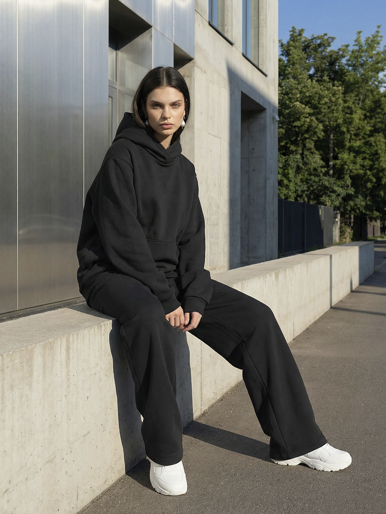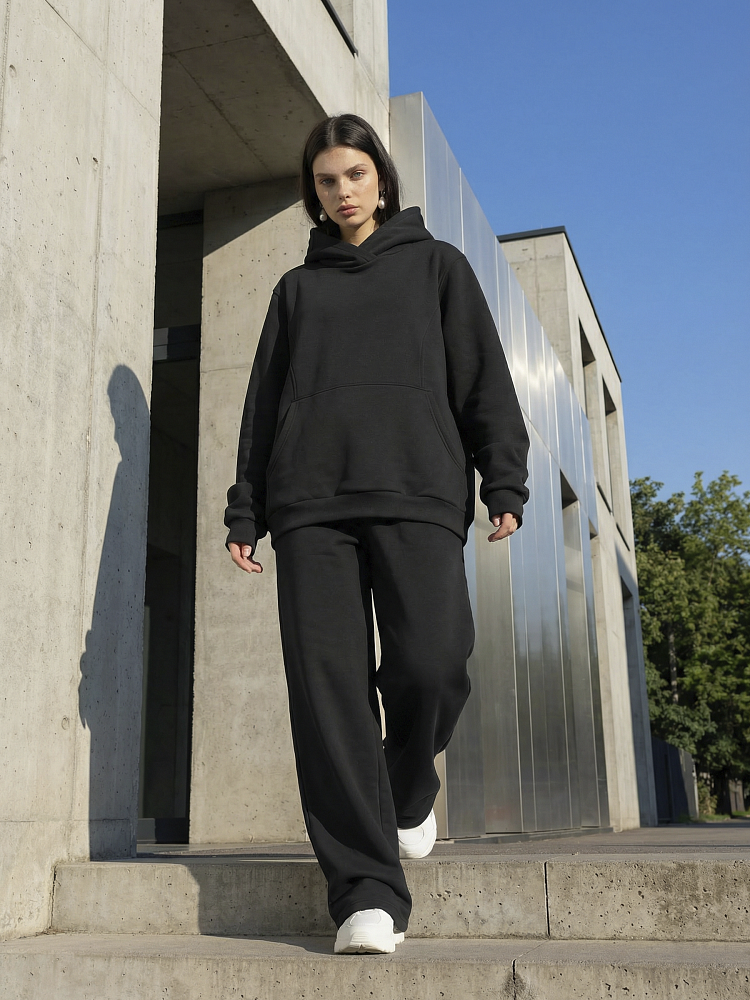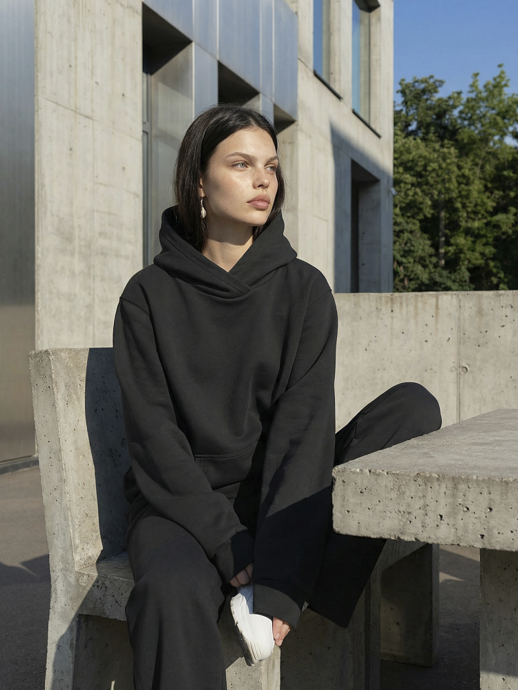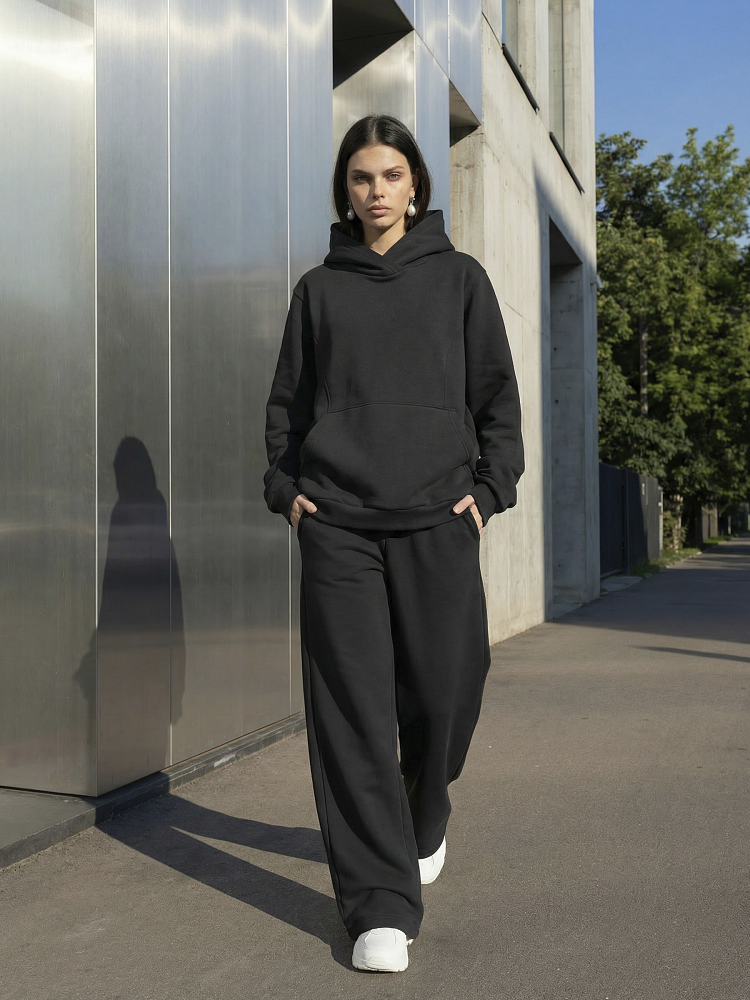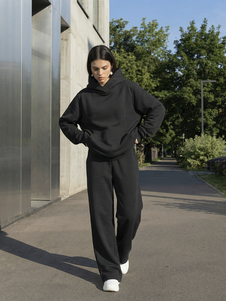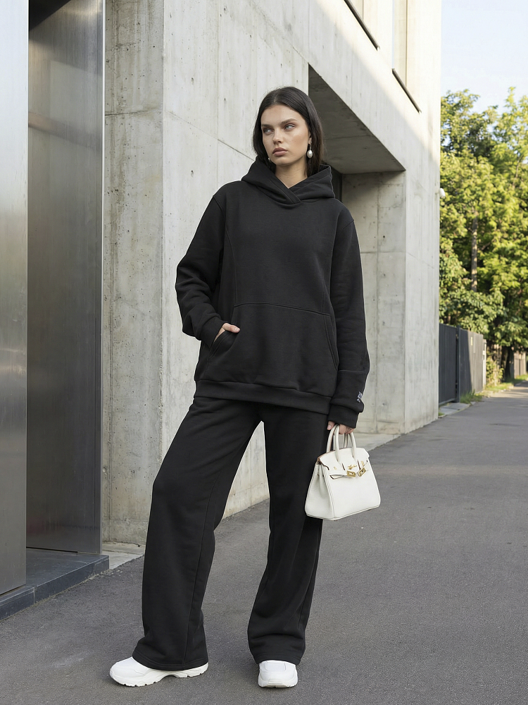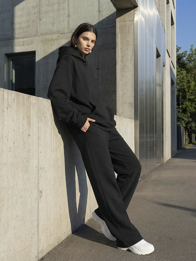 Детали: свободный силуэт, объемный капюшон, карман-кенгуру, широкие брюки на мягком поясе . Футер трехнитка петля.