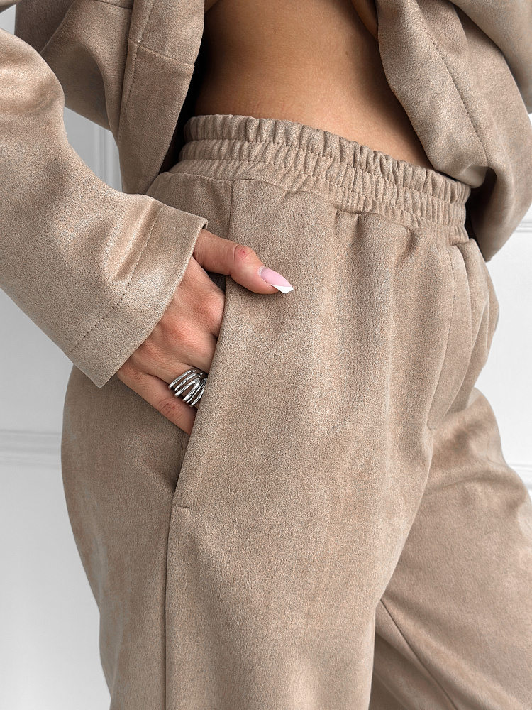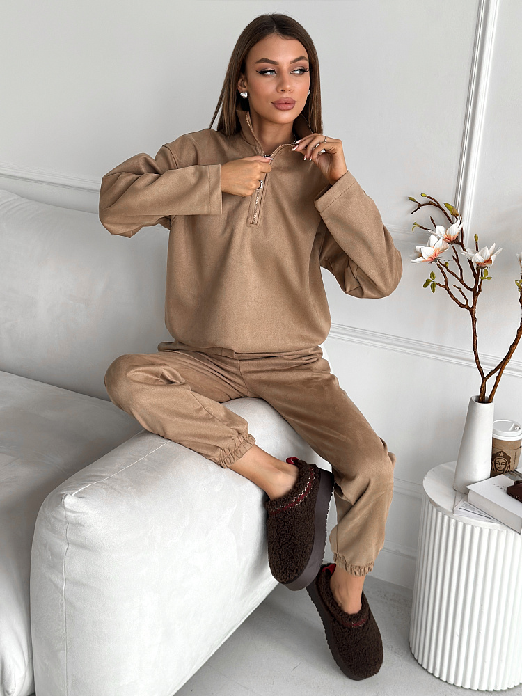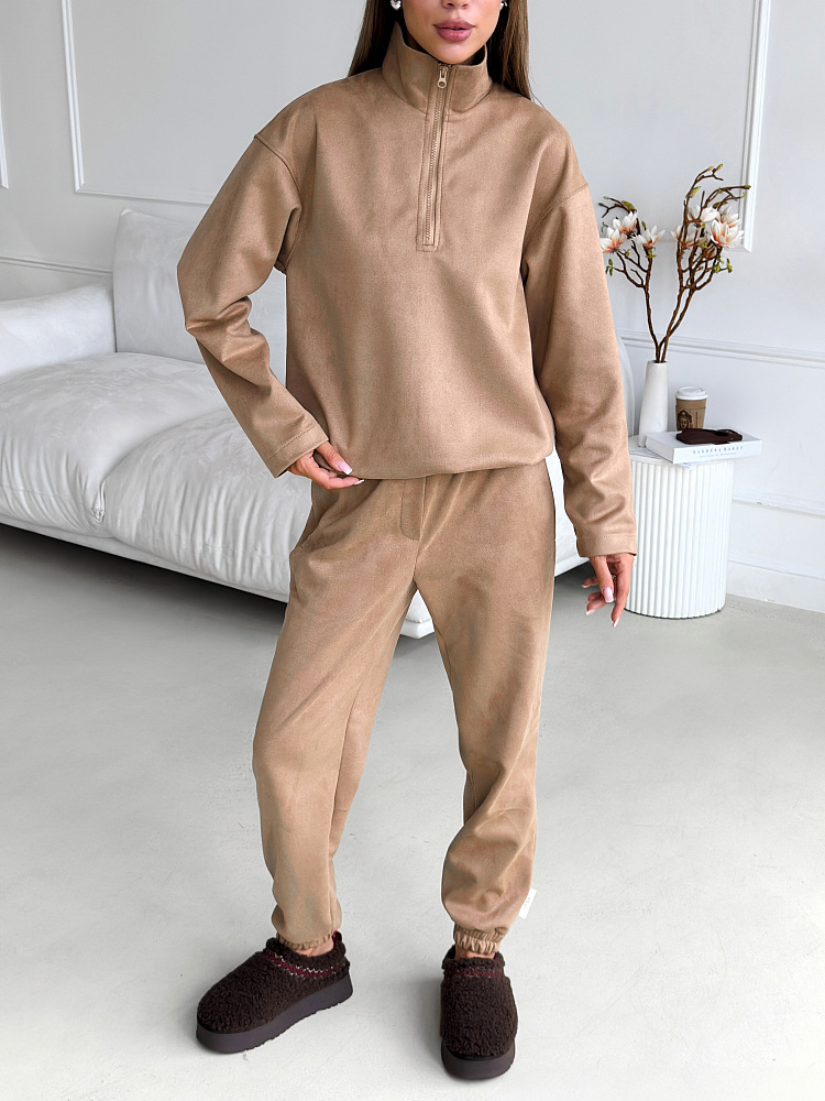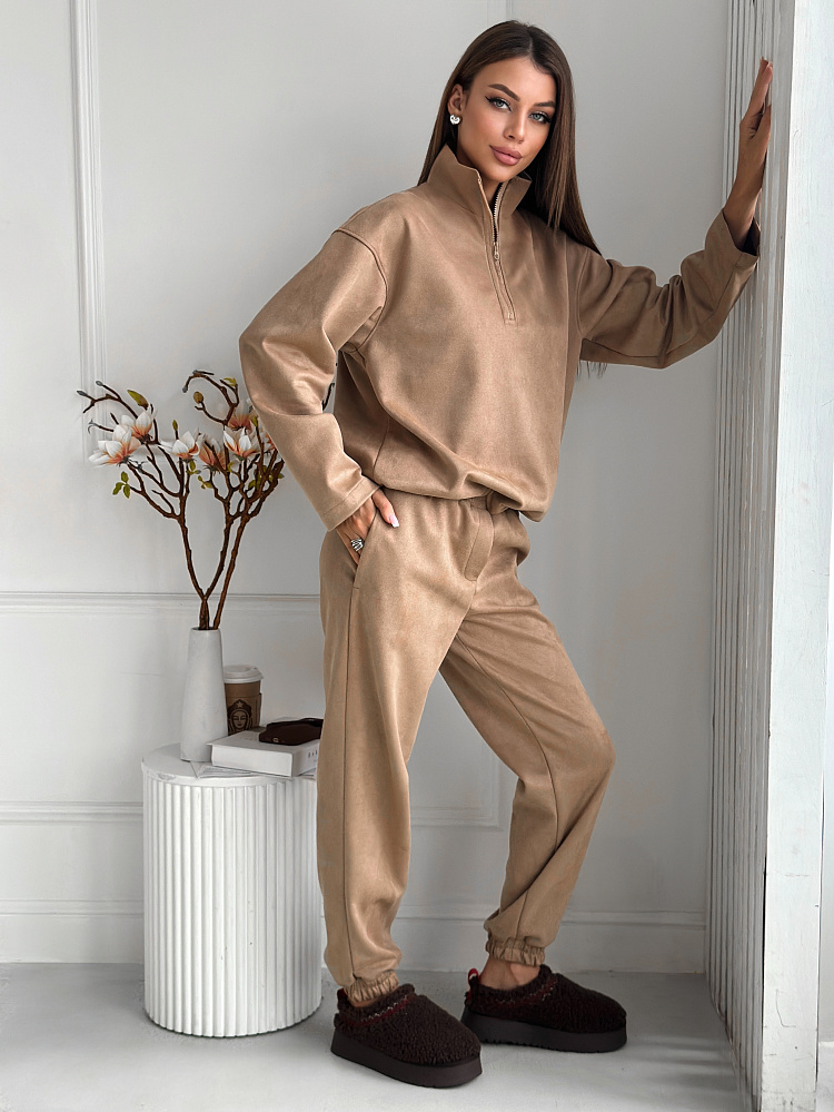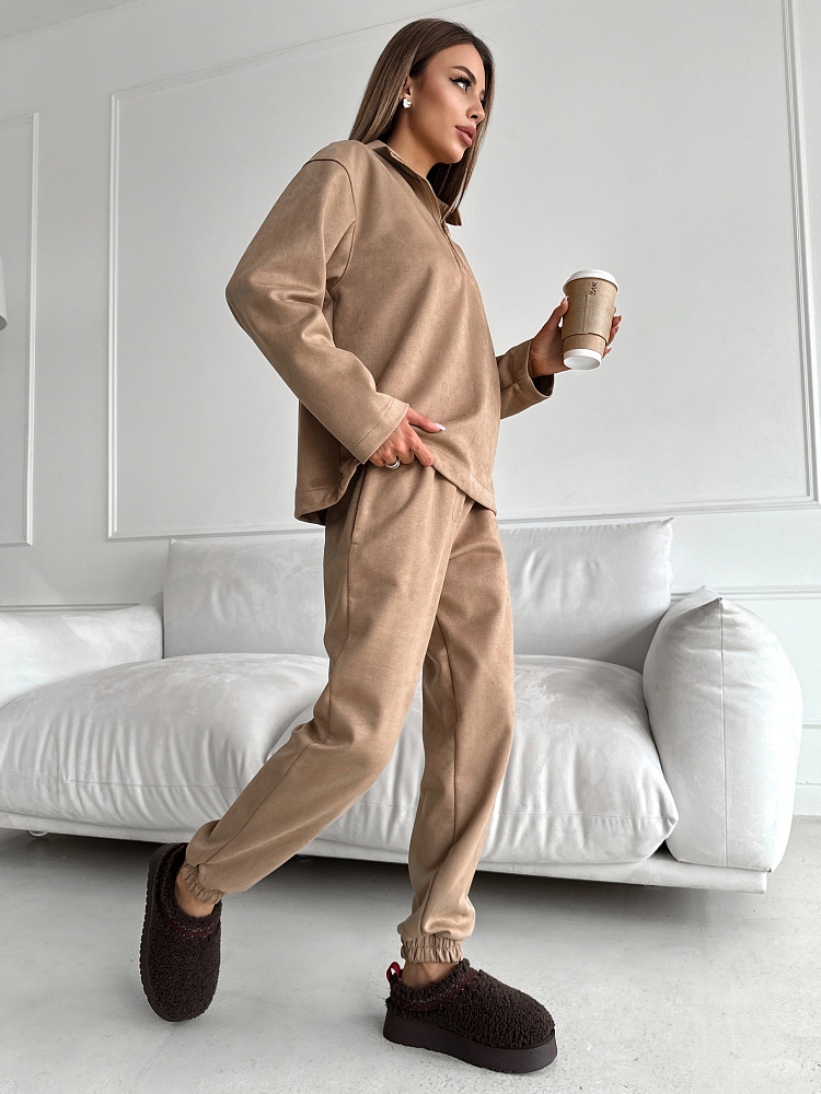Спортивный костюм женский осенний с брюками CITY STAR – это стильное и комфортное решение для активных девушек, которые ценят удобство и современный дизайн. Этот теплый брючный комплект oversize в молочном цвете из экозамши станет незаменимым спутником в прохладную погоду, идеально подходя для прогулок, поездок, учебы и активного отдыха. Кофта с молнией полузамок без начеса и трендовые штаны джоггеры создают свободный силуэт, который не сковывает движений. Внизу предусмотрена регулируемая кулиска, благодаря которой легко менять силуэт — от свободного до более приталенного. Трикотажный комплект двойка, созданный на собственном производстве, отличается высоким качеством и практичностью. Мягкая, ворсистая замша приятна к телу и обеспечивает комфорт в течение всего дня. Благодаря универсальному дизайну и широкой цветовой палитре костюм легко впишется в любой гардероб и станет любимой вещью для создания стильных образов.