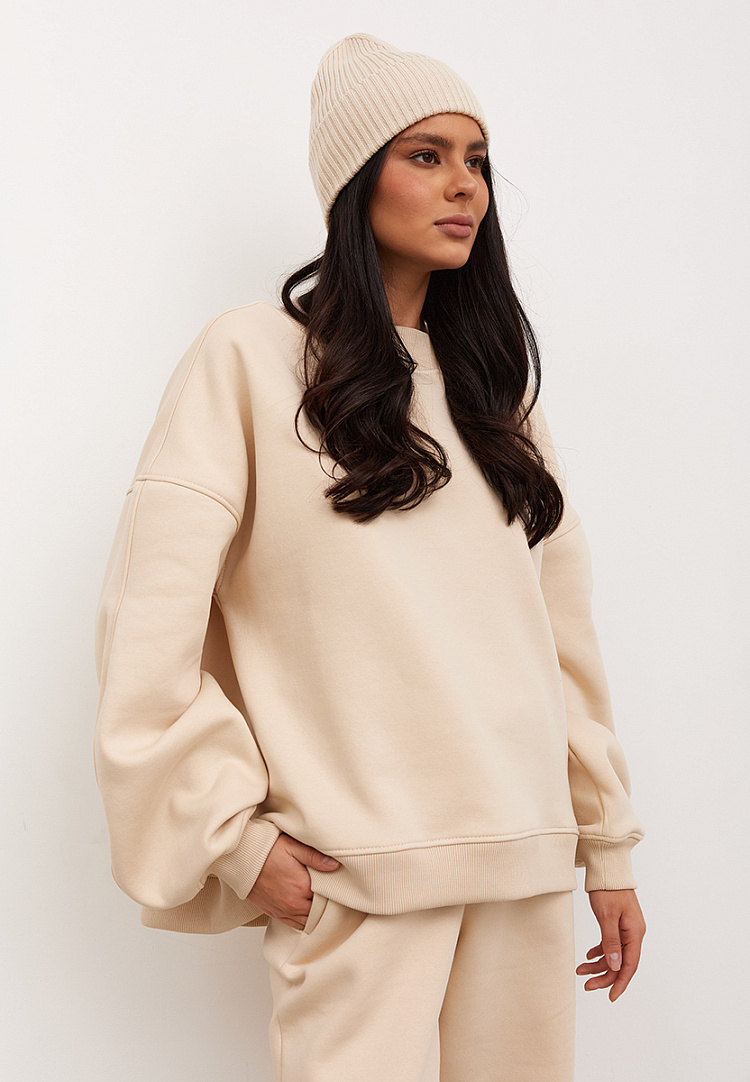 Детали: свитшот свободного силуэта, к низу имеет небольшое расширение, объемные рукава.