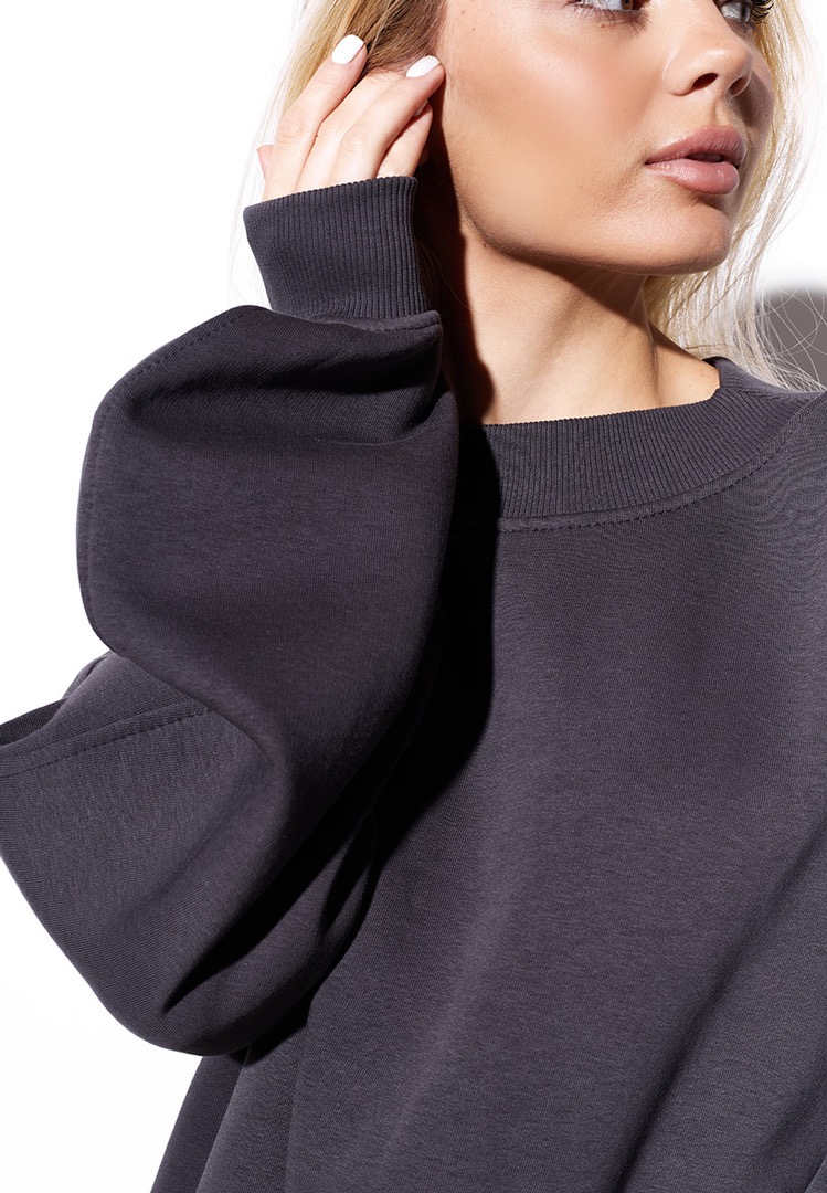 Детали: свитшот свободного силуэта, к низу имеет небольшое расширение, объемные рукава.