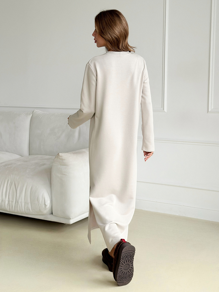 Теплое платье для прогулок в любую погоду. Крой платья позволяет совершать эксперименты: добавьте пояс, чтобы сделать образ более утонченным, или носите без него для расслабленного настроения.