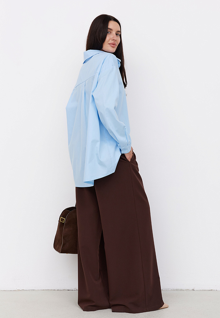 Приталенное уходит даже из делового дресс-кода. Просторная рубашка мужского типа элегантно смотрится на фигуре и создает эстетичный офисный образ.