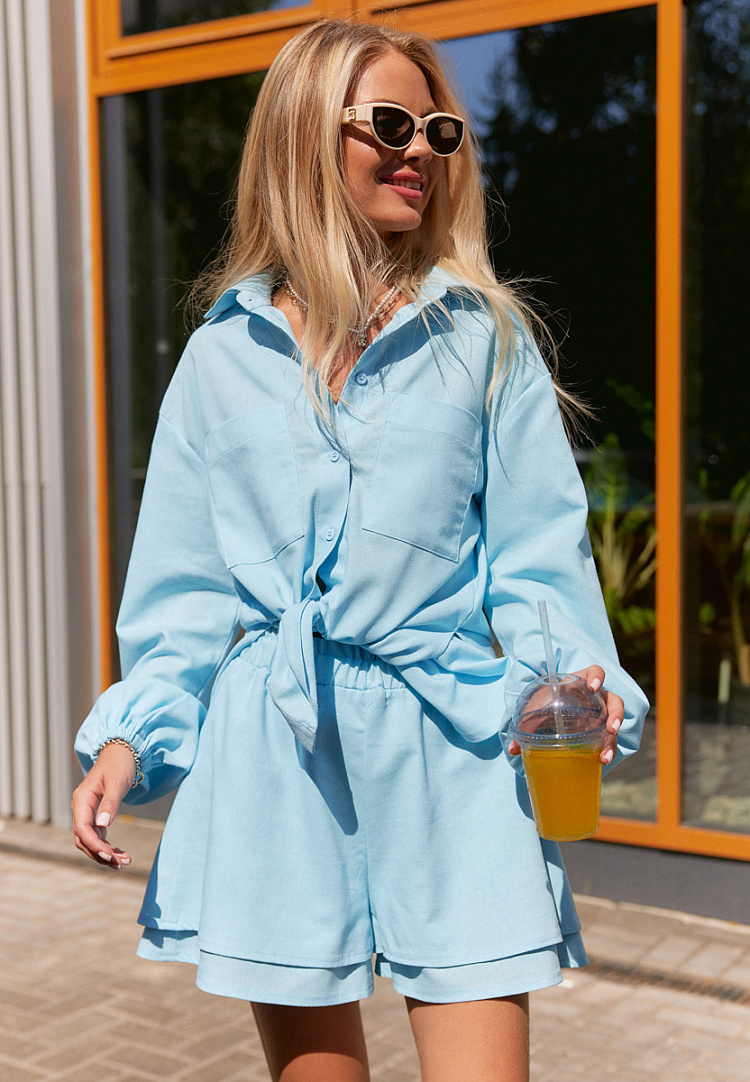 Свободные шорты с высокой талией визуально увеличивают бедра и делают акцент на ногах.