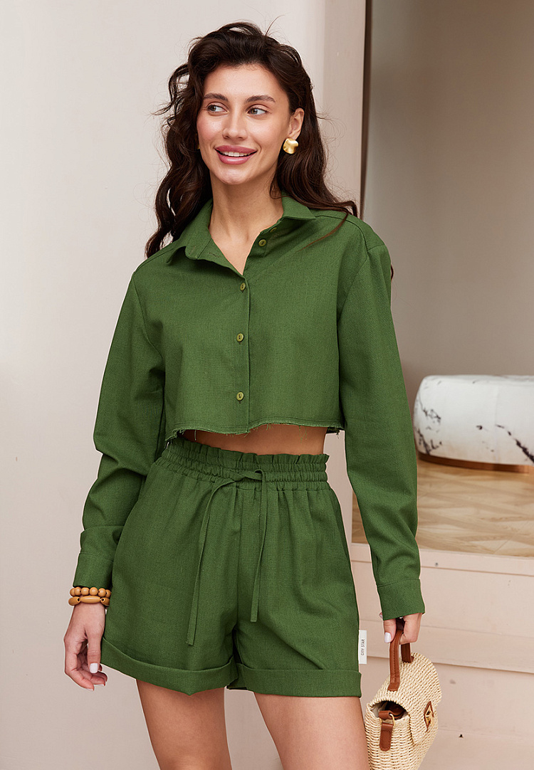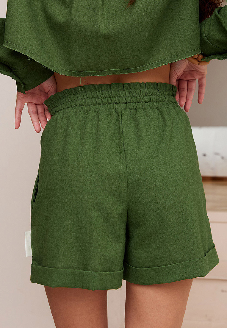 Детали: шорты немного расширены к низу. Шнурок в поясе. Карманы в боковых швах.
