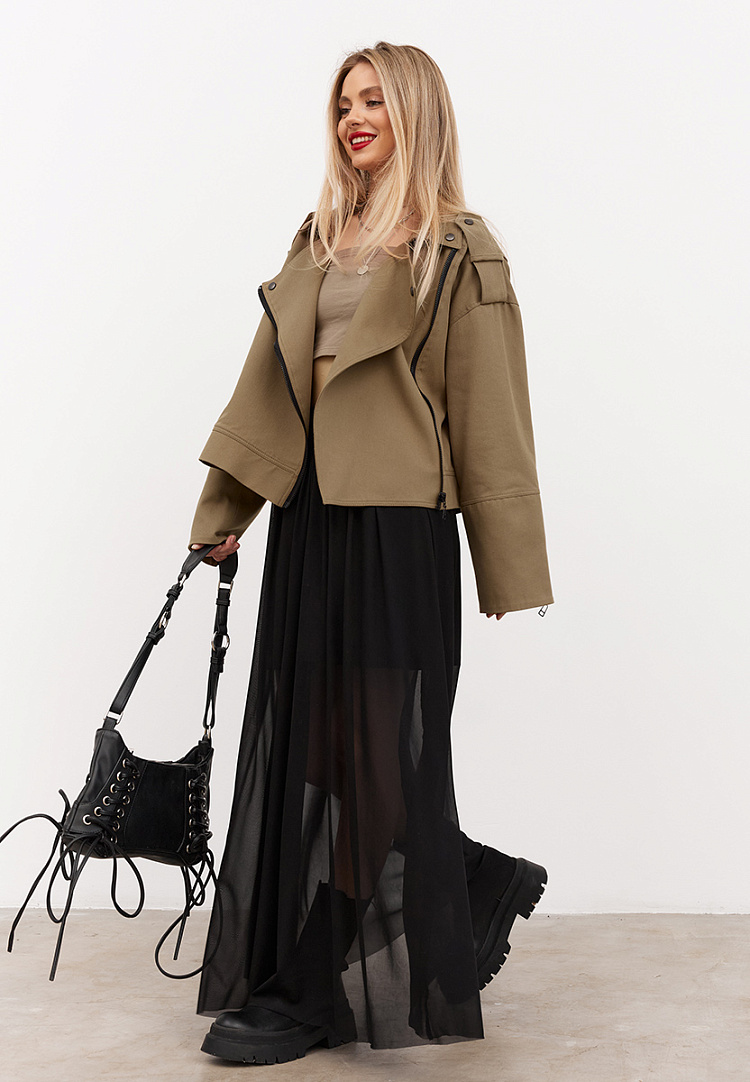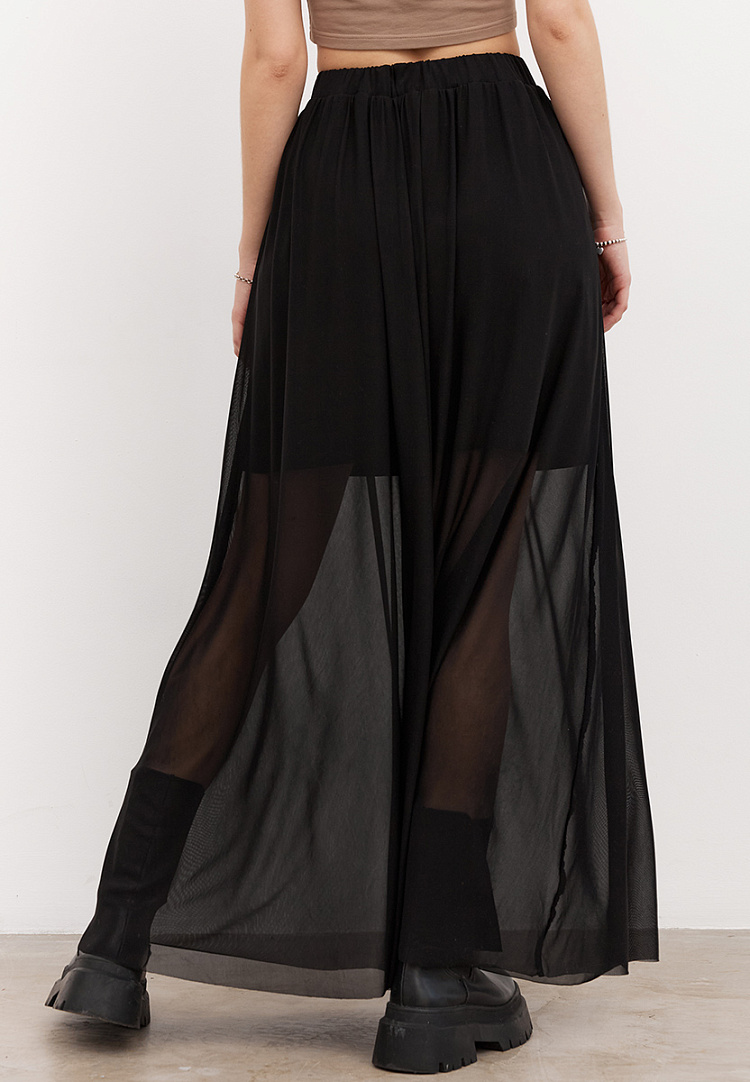 Детали: юбка макси из сетки с подъюбником из кулирки, силуэт трапеция. Юбка на сборке по талии, пояс на резинке. Нижняя юбка мини, верхняя юбка макси. Верхняя и нижняя юбка соединены в общий пояс.