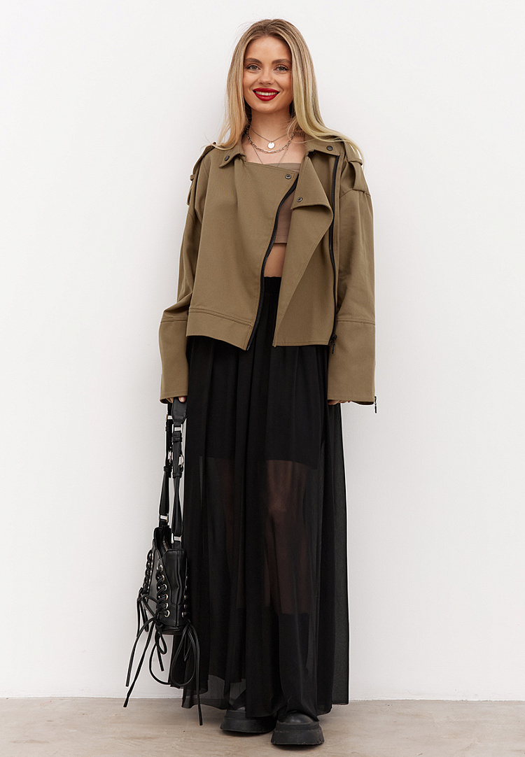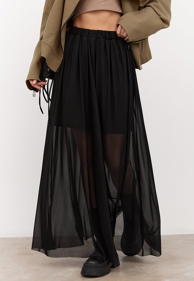 Летящая полупрозрачная юбка для светских выходов. Подклад выше колена позволит подчеркнуть всю красоту ног, прикрытых лишь легкой вуалью.