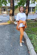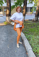Добрый день! Очень удобный лук, цвет огонь. Леггинсы немного собираются, но это не критично.