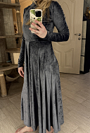 Очень красивое платье! Тяжелый плотный материал, благородный блеск и текстура. Приятный на ощупь велюр. Теплое. Не мнется. Цвет графит выглядит богато) На свой 42-44 взяла М, плечо и длина рукава по размеру. Спасибо Сити Стар!
