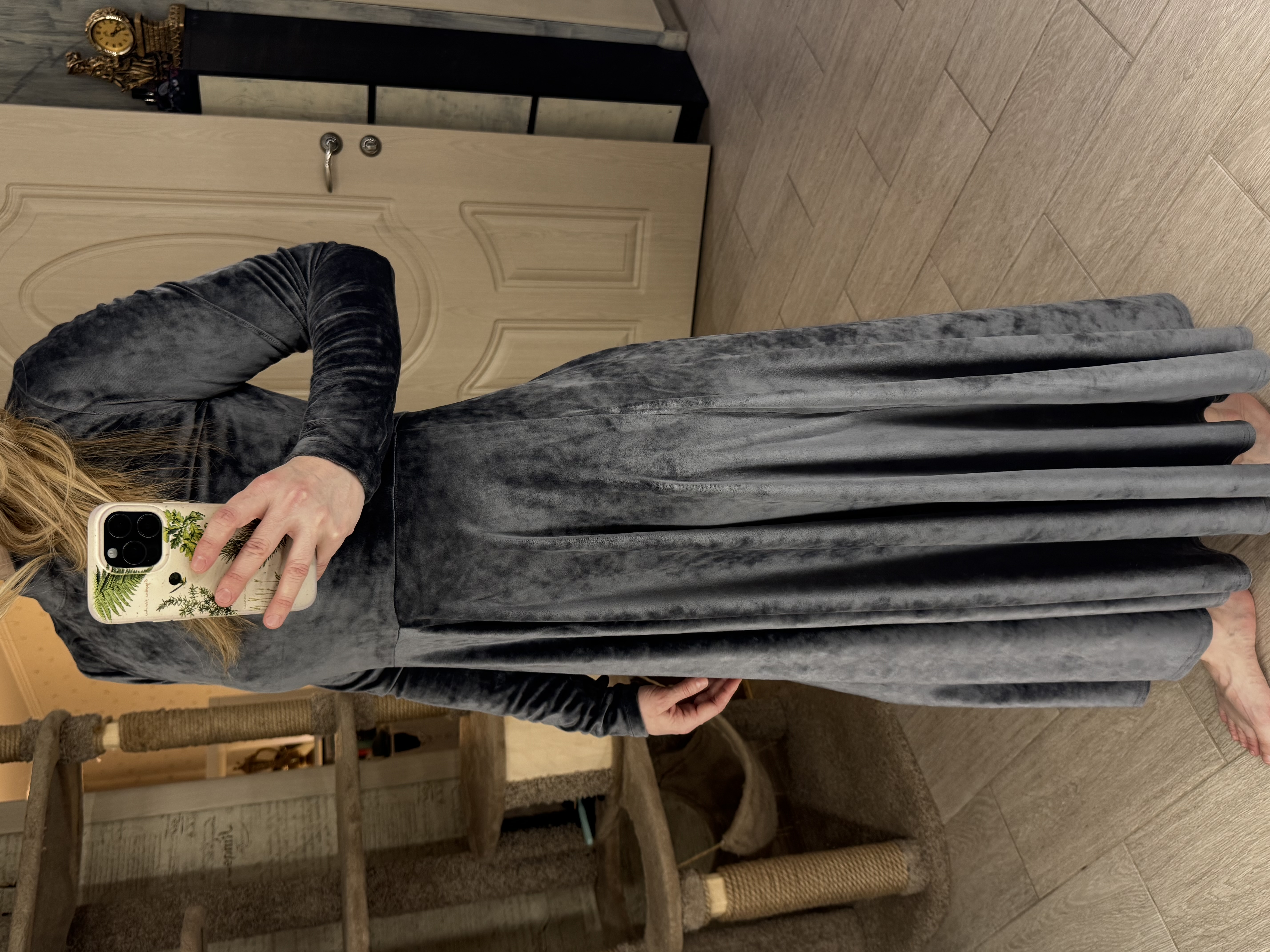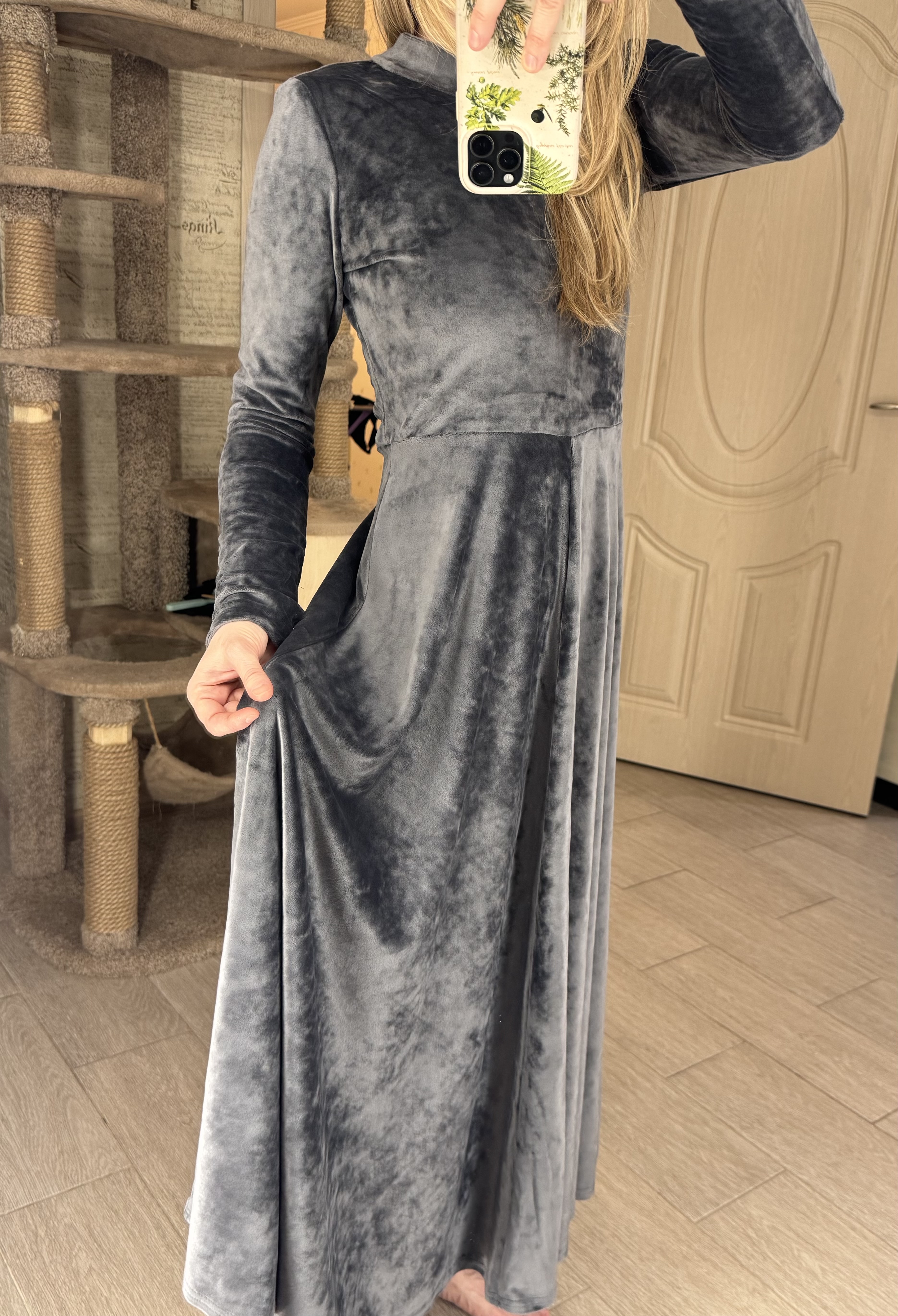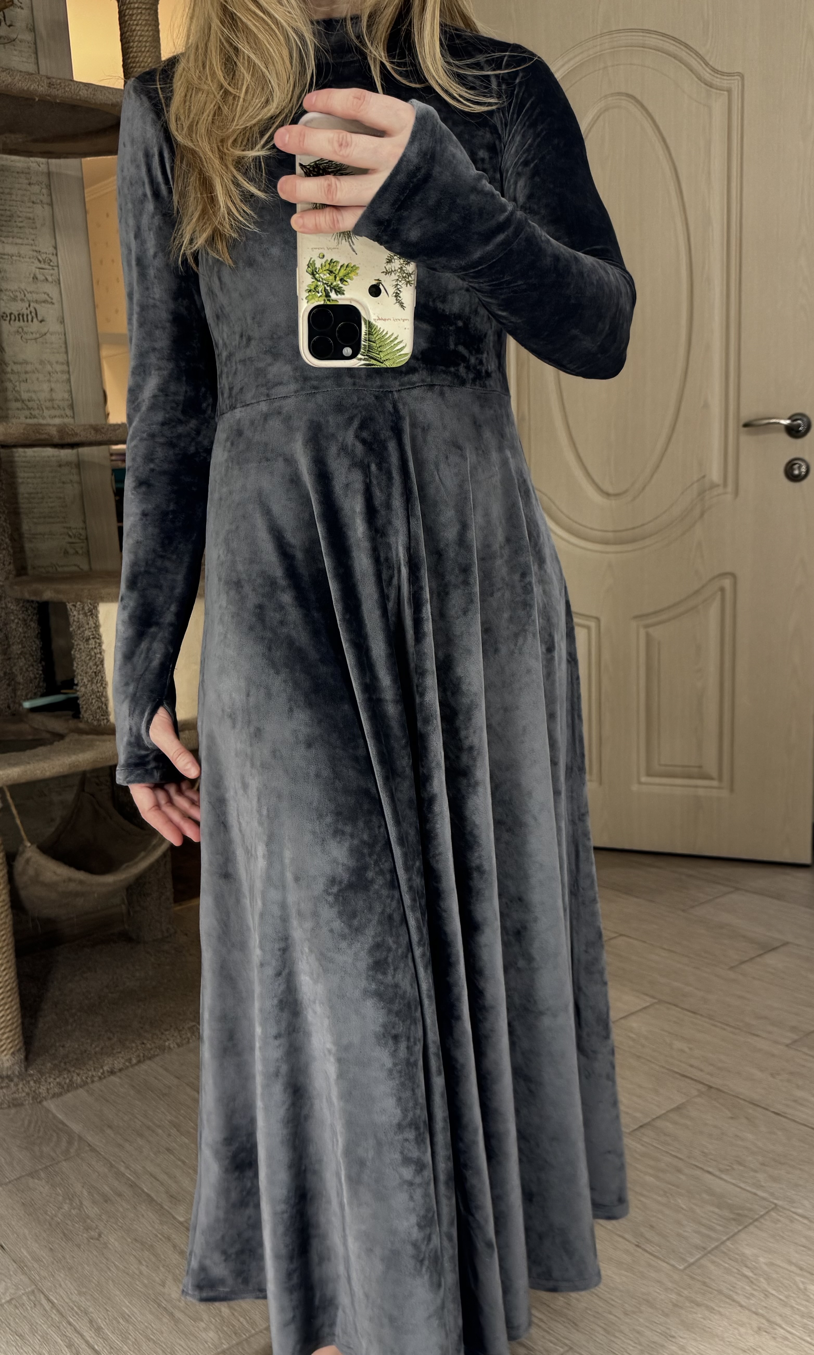 Понравилось это платье, такое нежное на ощупь и оно очень теплое, что совсем неожиданно, это платье определенно для холодного времени года. Правда, оно на высоких девушек, у меня рост 165, мне кажется от 170 было бы лучше. Ну и да, вельвет полнит, к этому надо быть готовой. Всё же оставила, потому что ну очень на ощупь понравилось