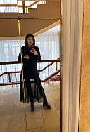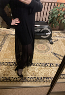 Платье представляет собой дуэт: трикотажное мини и сверху – прозрачное платье-сетка. Оба элемента, конечно, можно носить отдельно, если у вас есть соответствующая смелость и подходящие обстоятельства. Трикотажное платье, хотя и хорошее, для соло-выхода, увы, коротковато. Зато сетка – настоящая находка для креативных натур, отлично комбинируется с футболками и джинсами, как подсказывает Pinterest. А если вам захочется по-настоящему удивить, можно смело экспериментировать, надев её поверх нижнего белья, если вы понимаете, о чём я) На фото я сочетала платье с черными колготками, поэтому контраст светлых ног и черного платья, который мог бы создать вау-эффект, не удался. Зато в носке оно оказалось исключительно комфортным и приятным.