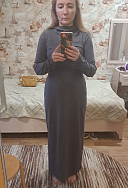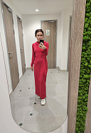 Платье великолепное! Обычно ношу S, но прочитав отзывы взяла М. На 90-72-94 сидит идеально. Можно было взять даже L если кто любит посвободнее или на фигуру груша. Ткань приятная к телу. На рост 162 длина по щиколотку. Подойдёт и высоким.