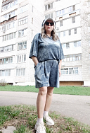 Шорты, как и весь комплект, очень понравились, они приятные на ощупь и свободные, очень удобно для дома. Есть вместительные карманы, резинка не тугая. Конечно, увеличивают визуально бедра, так как складки и особенность ткани, но для дома отлично!