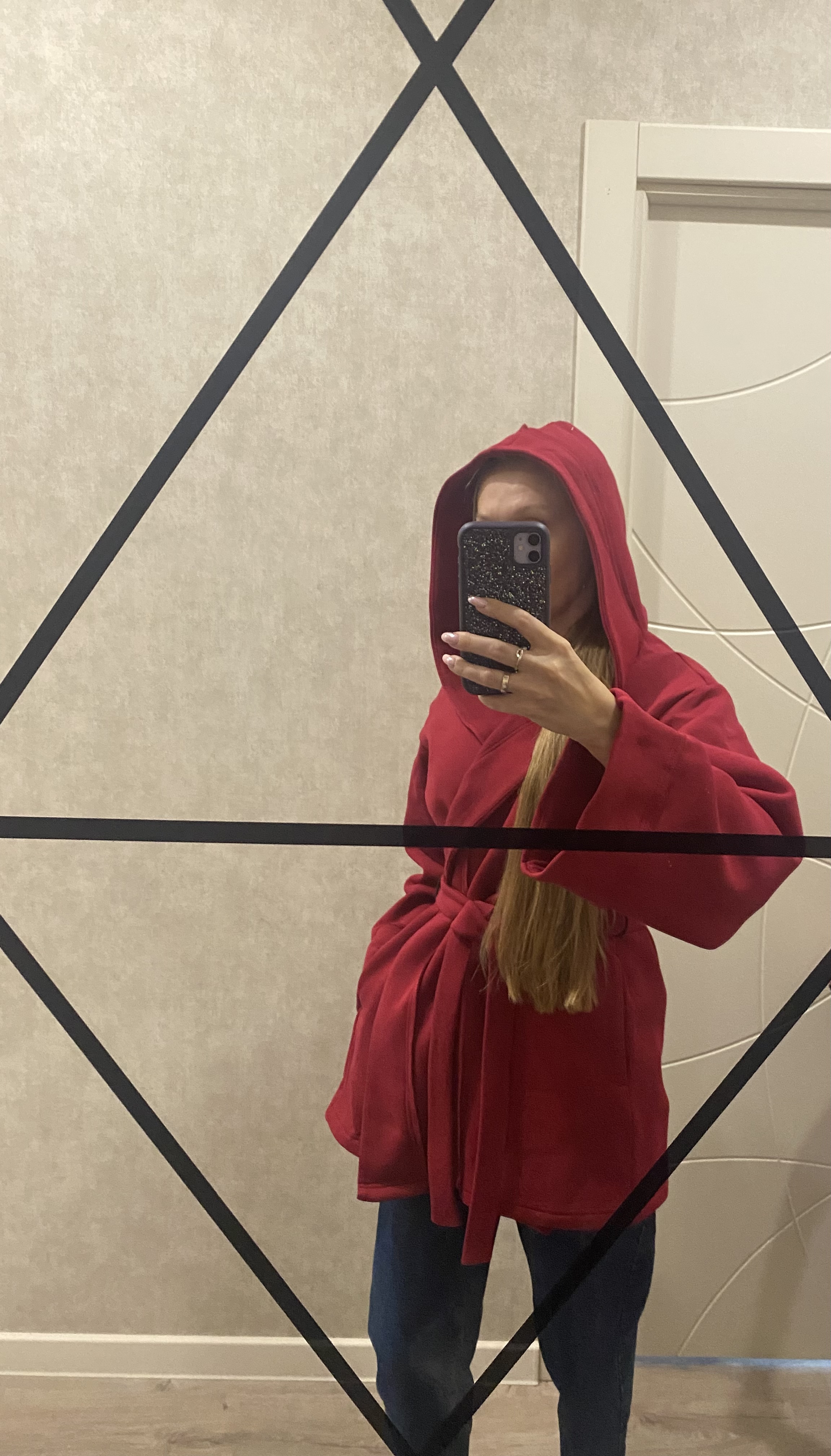Красивый цвет и дизайн с интересными деталями, мягкое, тёплое, на 42 размер в ширину большевато, конечно, но не критично. Капюшон хороший по глубине. Крутая вещь, короче❤️