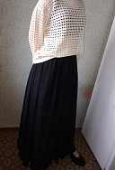 Эффектная юбка, но очень сильно электризуется, антистатик даже не спас особо ситуацию и в связи с этим к ней прилипает все, я даже представить не могу что с ней будет пройдя по улице где пыль и все такое, далеко не самая практичная вещь, у меня она за несколько минут собрала все волосы и пыль вокруг, если есть животные будет сложно с ней, к сожалению.