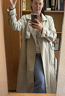 Тренч очень легкий, носить в теплую погоду или в дождь .Стильно очень смотрится .