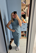 Взяла это платье потому что надо было добрать до суммы подарка. А оно оказалось самым удачным товаром! На параметры 98/74/89 размер L сел отлично. Думаю, что людям с неидеальной фигурой такое платье лучше брать чуть большего размера, чтобы не обтягивало живот и бедра. Ткань и цвет понравились, прям порадовалась, что купила!