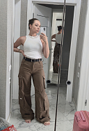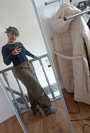 Задумка брюк очень интересная, но по ощущениям не хватает чуть в бёдрах пару см, по фасон это больше на девушек не с объёмными бёдрами, понравилась идея подбирать внизу штанины, костюмом с косухой очень классно выглядит❤️