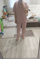 Костюм очень понравился, легкий и комфортный. Пошив как всегда на высоте. Размер S отлично сел на параметры 90-70-95, верх оверсайз, длина штанин на рост 170 отличная.