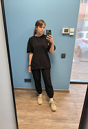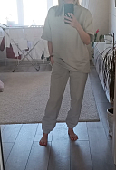 Одна из позиций моего первого заказа. Очень превзошли все мои ожидания все 3 позиции) костюм из тяжеленького и очень приятного трикотажа, футболка вообще огонь, и необработанный низ очень классно смотрится. Мужу понравился так, что я пошла смотреть есть ли мужская коллекция, но к сожалению ее нет(