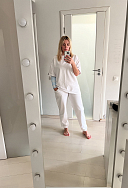 Обожаю этот костюмчик) Свободный, комфортный, и снимать его совсем не хочется) Ткань плотная, но благодаря размеру оверсайз в нём не жарко.