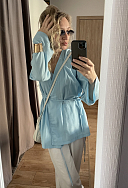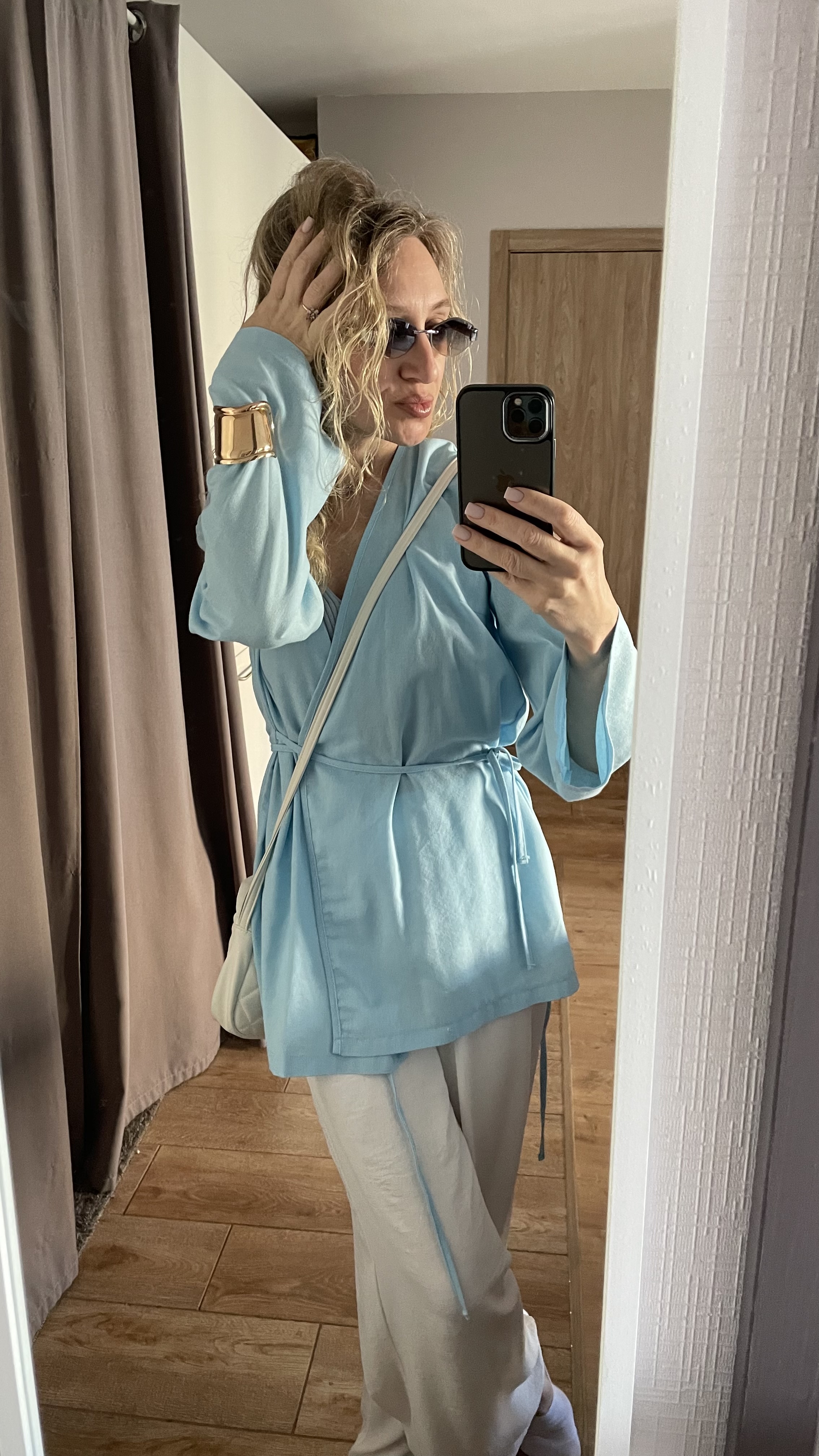 Интересная модель кимоно, можно носить по разному, сочетать с разными низами гардероба. Мне очень понравилось.