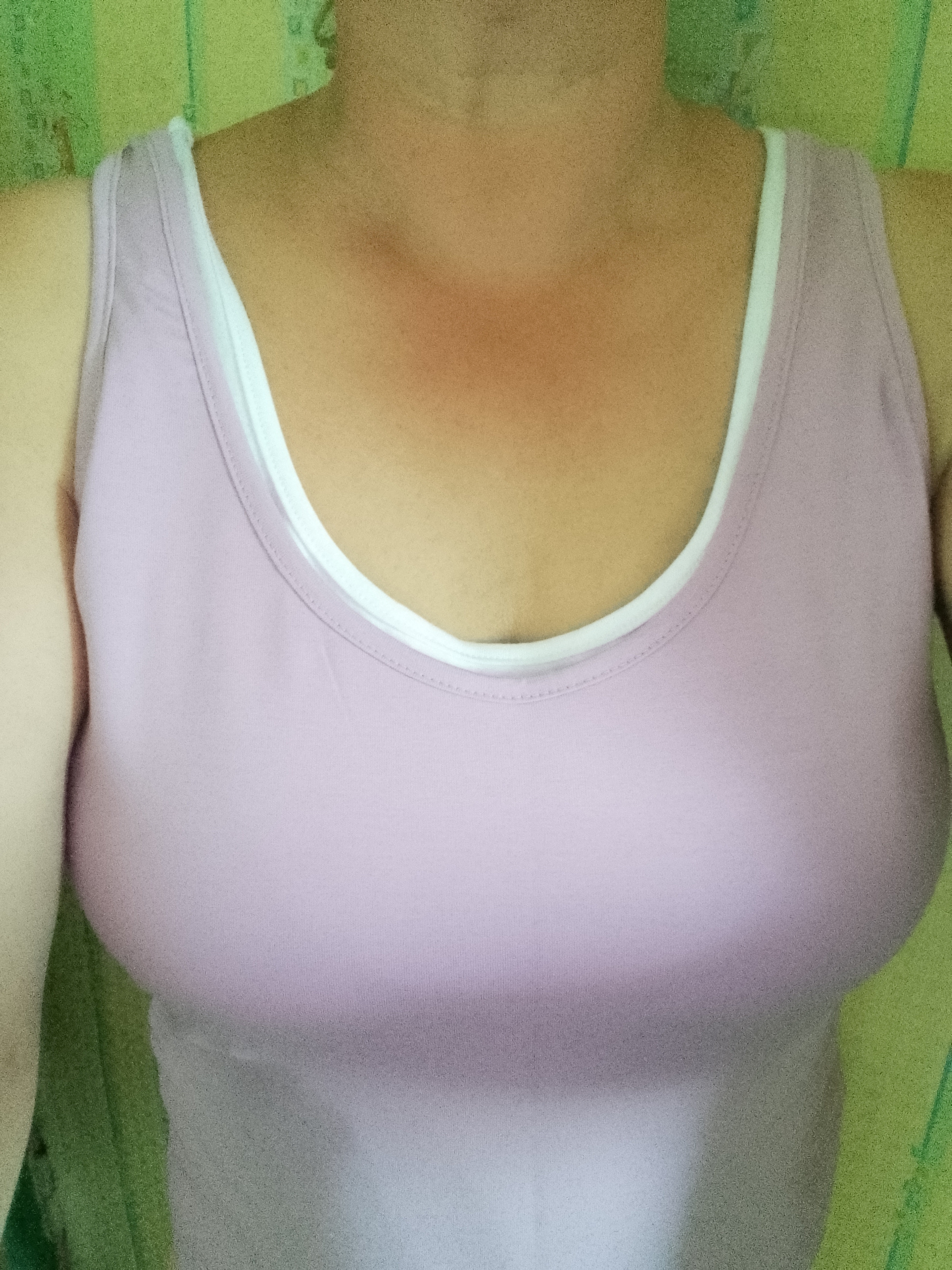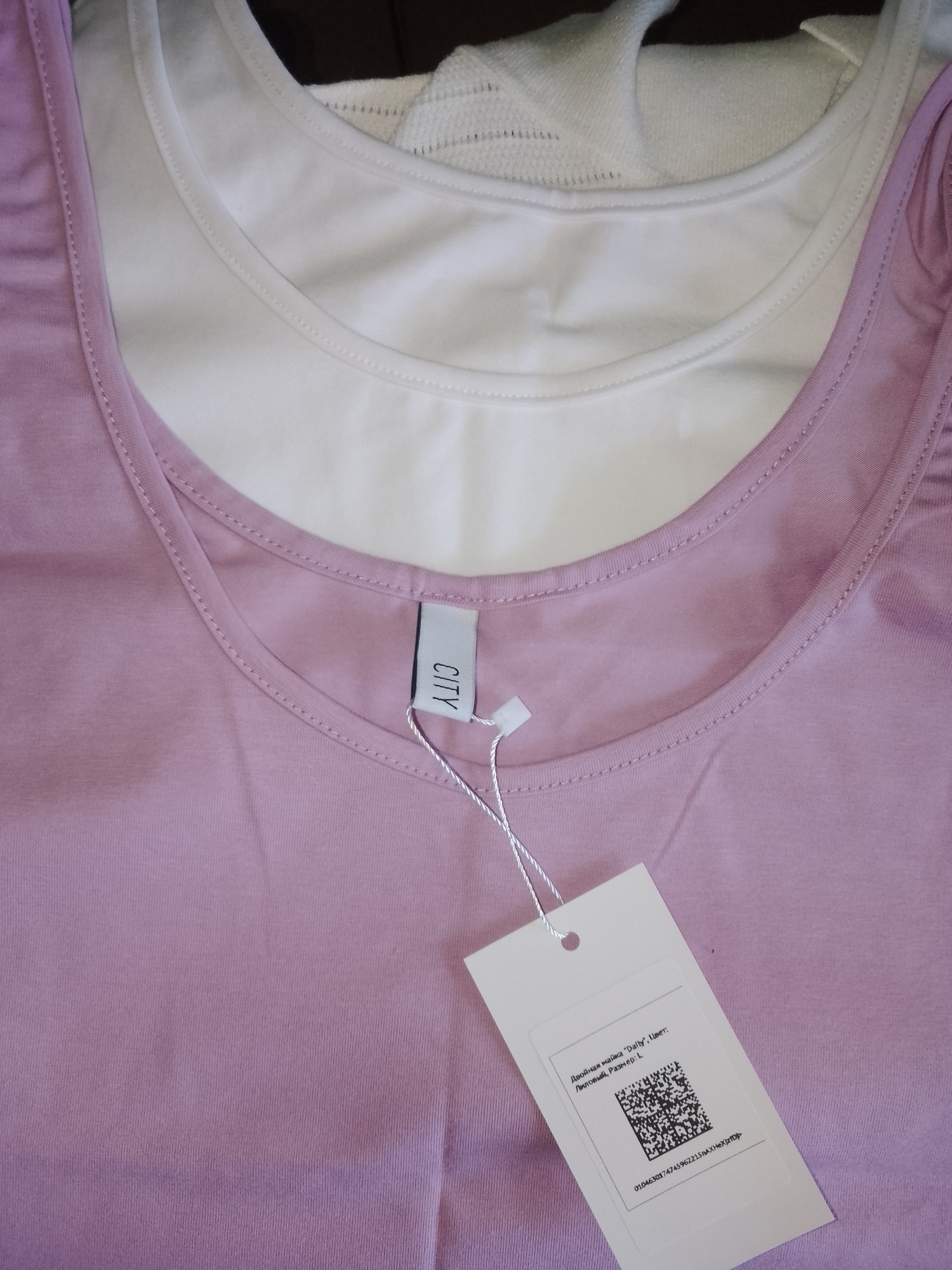 Замечательные базовые майки. Белая плотнее, сиреневая более тонкая. На ог - 102 сели норм. Слегка свободно. Думаю ещё и в другом цвете взять, можно даже и поменьше размером. Классные!