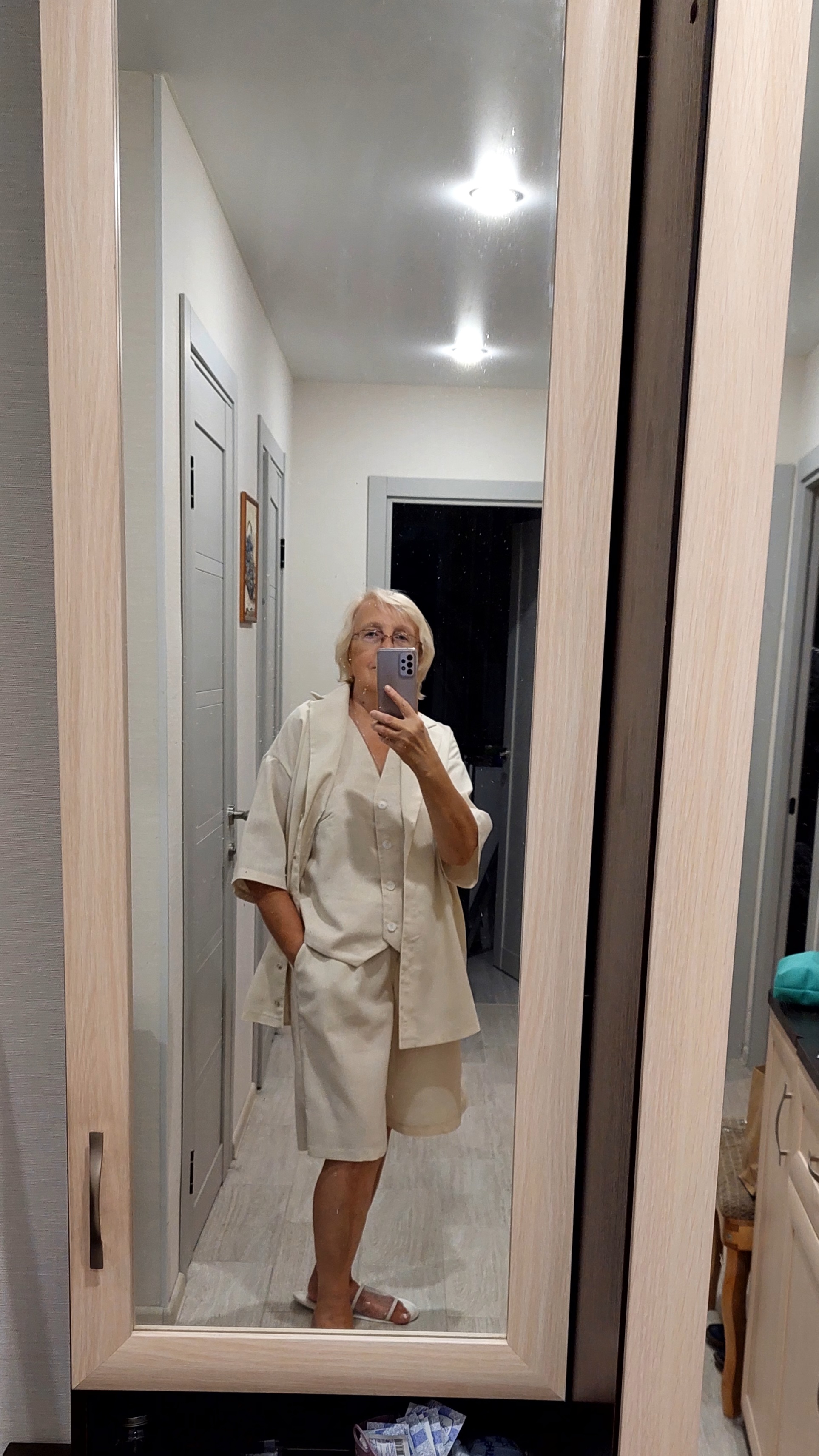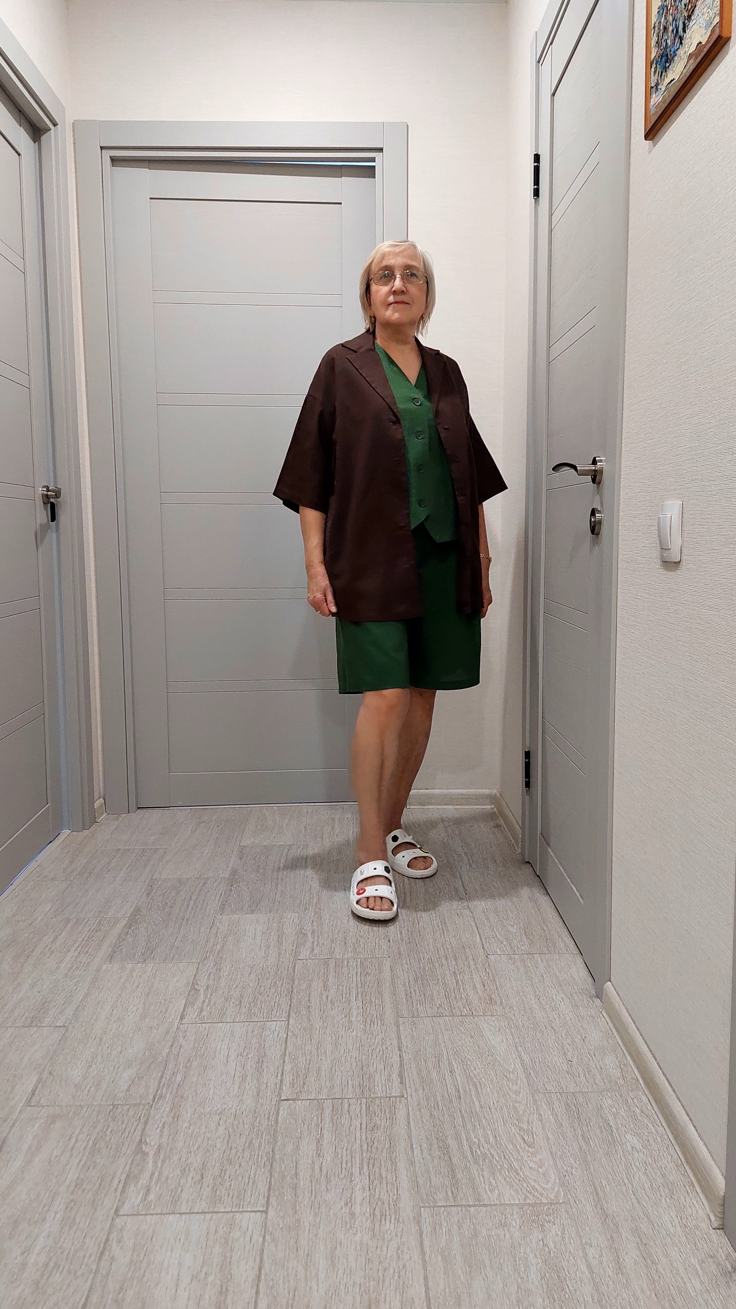 Шикарная ткань, классная она. Комплект получился, шорты тоже есть. Из этой ткани вообще всё супер. И платье купила и жакет