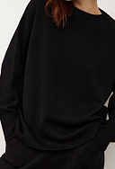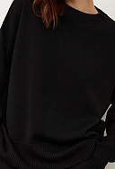 Джемпер на ощупь приятный, тонкий, но теплый. На параметры 95-80-105 размер M-L сидит свободно. По спинке модель чуть длиннее переда, рукава и низ отделаны широкой вязанной резинкой, что выглядит очень стильно.