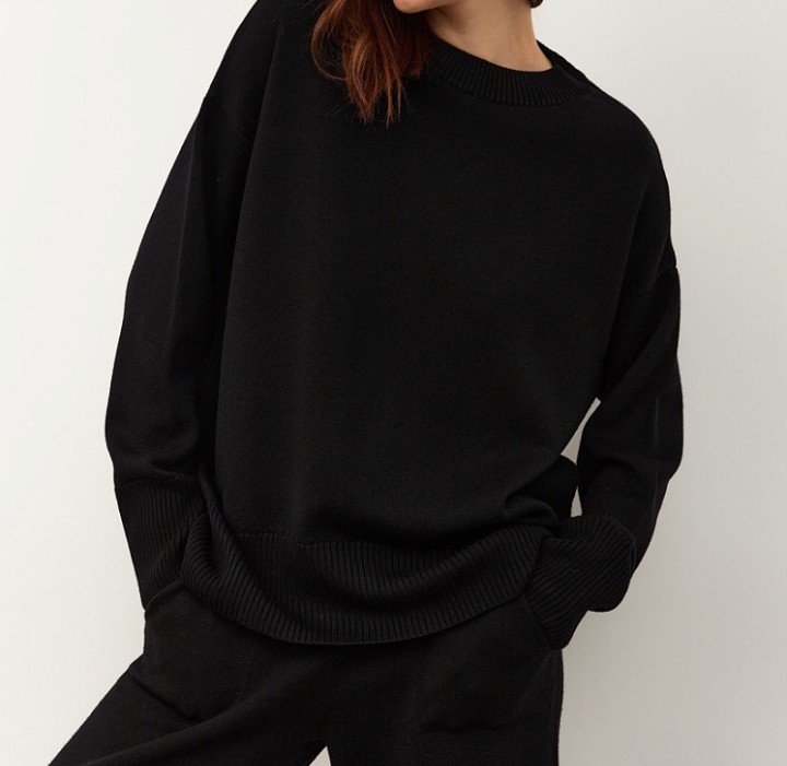 Шикарный джемпер, чёрный немного меньше чем молочный по размеру , сел идеально и в пир и в мир как говорится