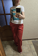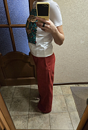 Классные штаны. Супер любимая ткань. На мой рост 160 длинны, обрезала немного. На бедра 102 взяла ХЛ, чтоб мега широкие были)) конечно можно было бы и Л, но хотелось из быстрой доставки, уж что было)))