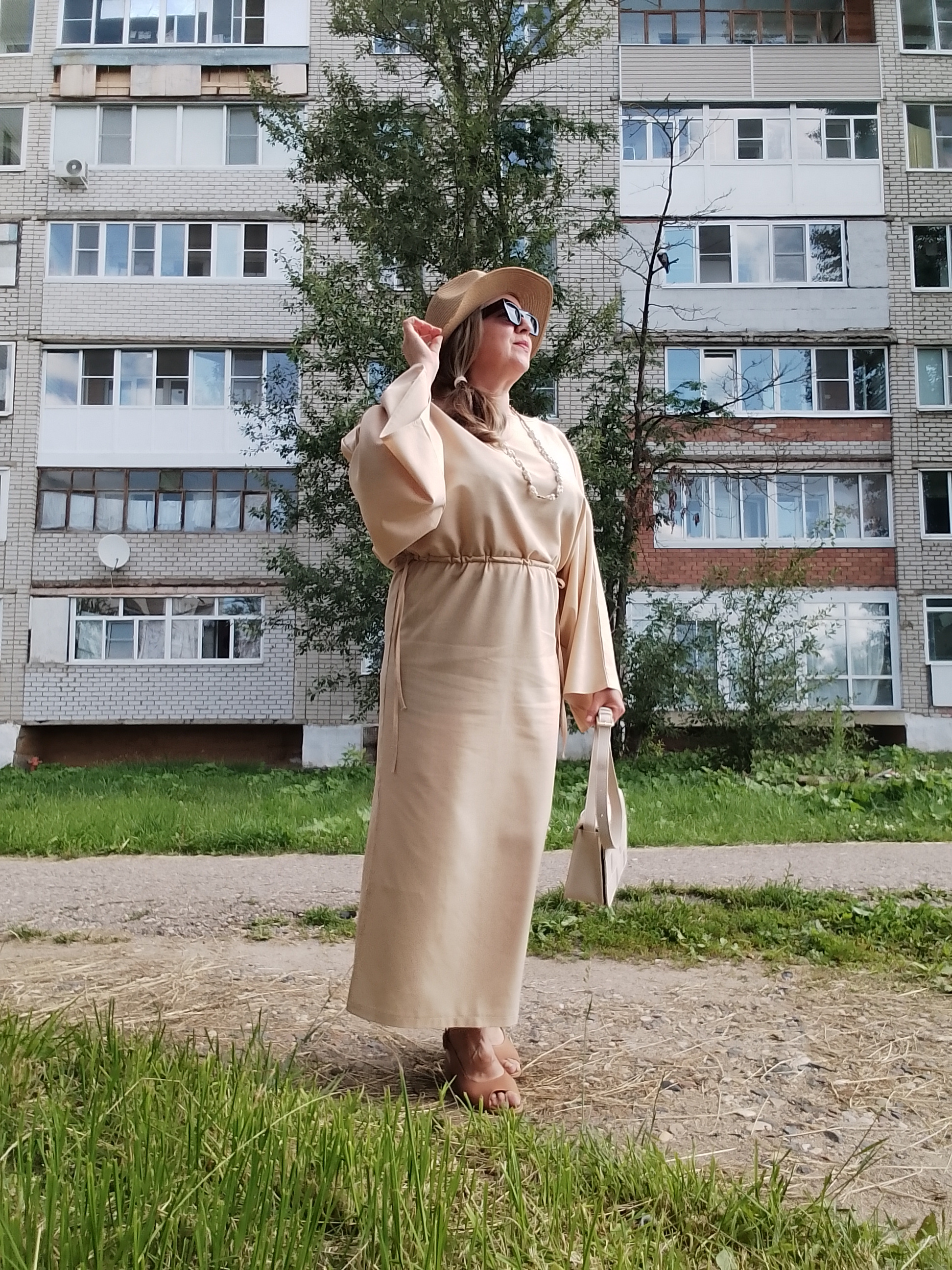 Какое оно суперское. Мой рост 160 . думала придётся под себя подгонять, а нет. Всё отлично. ОГ-102. ОБ-102. Все как надо , всё по мне))все спрашивали на работе, где такое классное купила)) И ткань качественная и пошив! Уже не первая вещь из этой ткани.