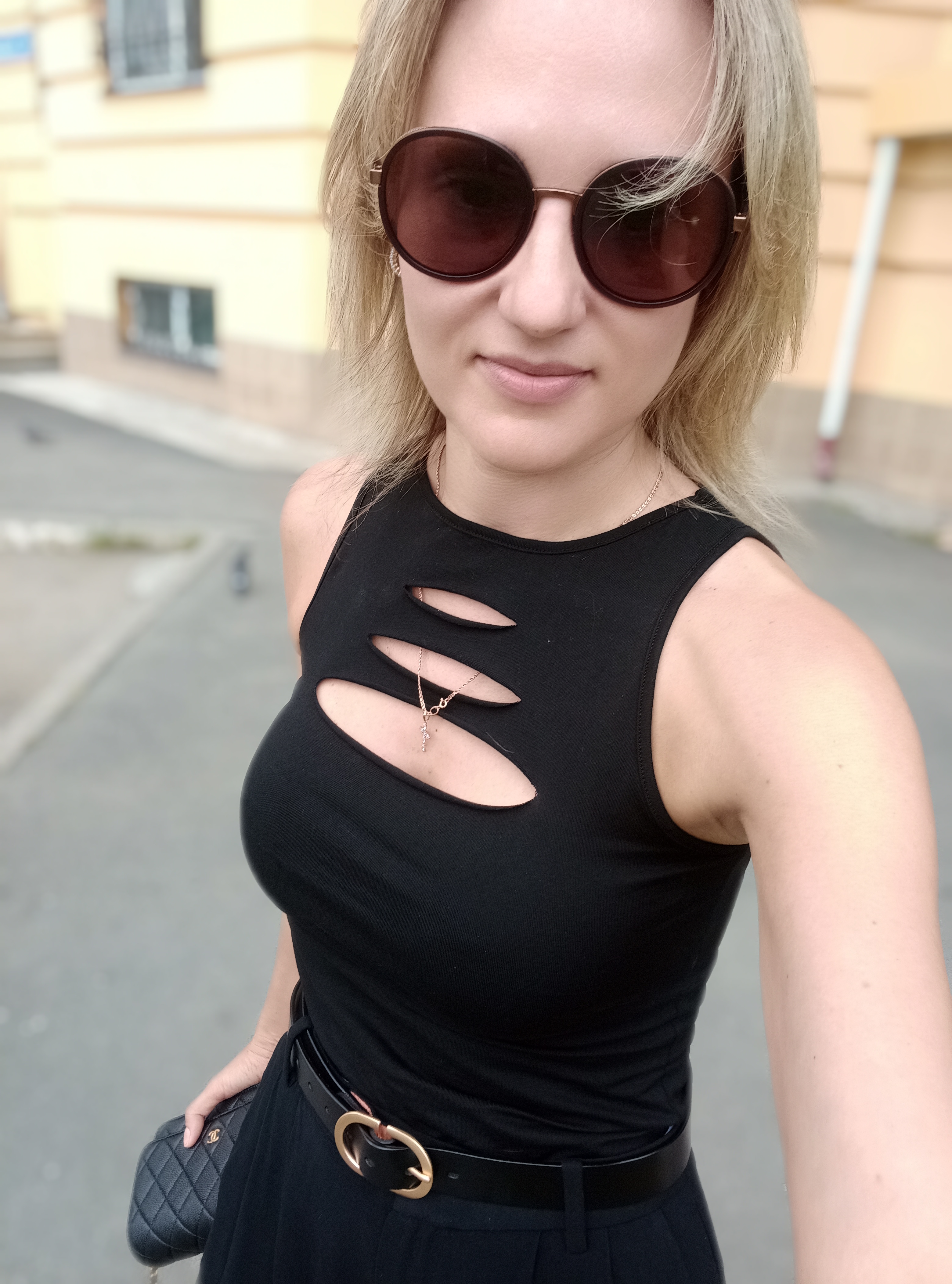Ну очень нескромная майка). Под неё нужны пестисы хотя бы (ну или нет, зависит от смелости каждой). Оставила, хотя не знаю куда смогу надеть. На 46 размер взяла L. Не впритык, но и не утягивает, как футболка в размере М из этой серии