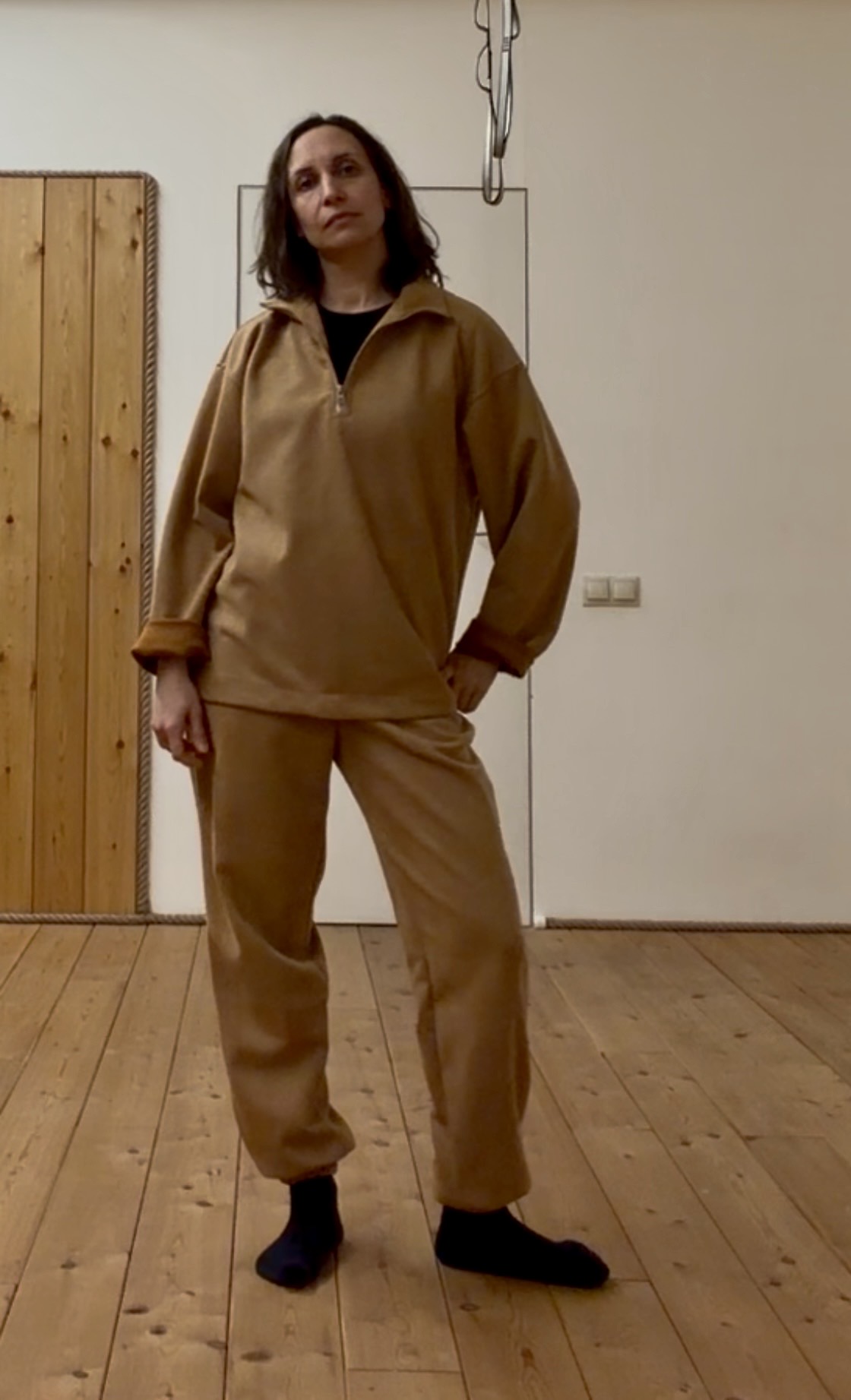 Очень нравится, и как сидит костюм, и на ощупь приятный. Переживала, что цвет будет сливаться со мной, но в итоге все в порядке! Спасибо за костюм