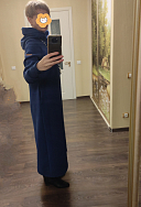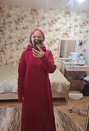 Жаль видео нельзя добавить, только фото. Цвет, как на первом фото. Мягкое, теплое и плотное платьице, просто восторг! Правда сильно лезь ворс изнанки при первой носки, но думаю это дело времени. Пока не стирала, может через пару стирок перестанет лезть ворс. Натуральный хлопок в основном, немного мнется. На мои параметры 95х80х100 посоветовали по телефону заказать S (хотя ношу М), чтобы было приталенное. Хотя в талии оказалось немного свободным, но ремень исправил ситуацию. Шилось на заказ 14 рабочих дней, потом ещё 7-8 дней доставляли. На работе многие оценили, одна сотрудница правда сравнила с банным халатом))) Но каждый видит по своему. Смотрится очень теплым, так как многие спрашивали, не жарко ли тебе в нем.))) Буду носить и зимой. Прошу прощение за некачественные фото. Другие с таким телефоном не особо получаются. Благодарю за качество! Практично и удобно! Рекомендую!