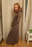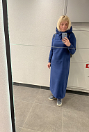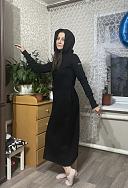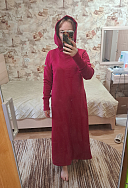 Очень комфортное, теплое платье. Цвет насыщенный, правда после стирки пришлось катышки поубирать, прямо сыпались с изнанки. И капюшон очень удобный.