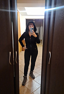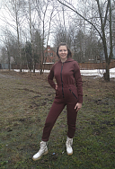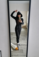 Сначала хочу сказать спасибо!!! Успели отшить и доставить за короткое время! Комбез приталенный, как я и хотела. Ношу 44-46, параметры 98 75 98, рост заказала S, как будто сшит на меня! Думала заказать М, но он не был бы таким облегающим. По длине впритык. Ушки я отрезала сразу, они мне не по возрасту. Нравится, что нет шнурка на талии, а резинка-утяжка. Фигуру отлично подчёркивает