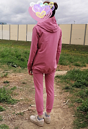 Отличный костюм, очень приятный к телу, красивый цвет. Удобный, нравятся зауженные штаны и длинное худи, прикрывает все что надо. На мой рост 164 штаны как будто укороченные, но смотрится хорошо.
