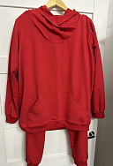 Красивый цвет. Толстовка идёт как оверсайз, штаны в обтяжку. Необычный капюшон.